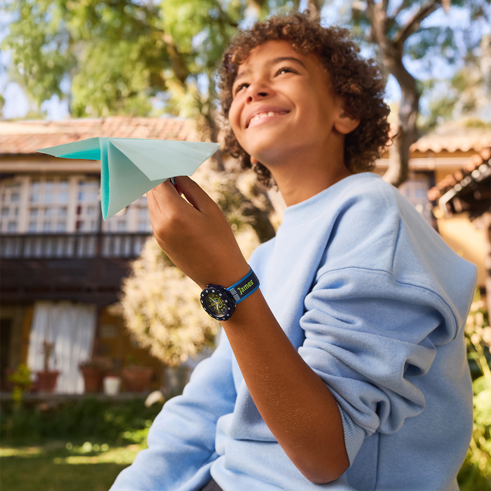 飛機主題的藍色童錶邀孩子奔向學習冒險旅程,在天空翱翔,快樂學習。