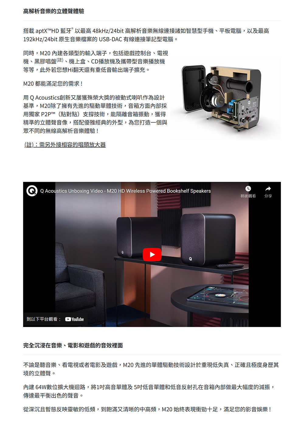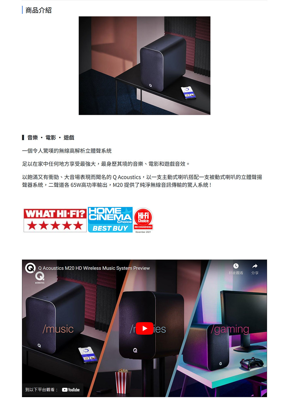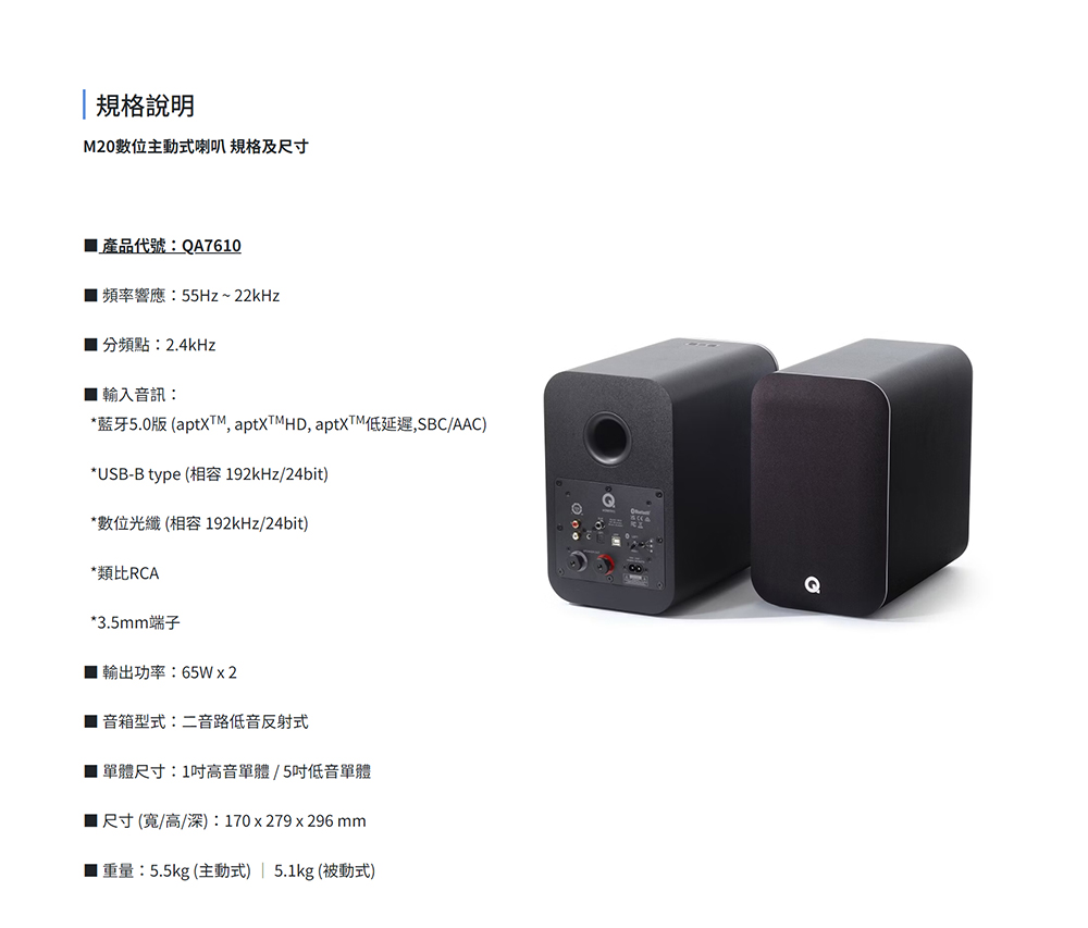 【Q Acoustics】M20 數位主動式喇叭(搭載 aptX™HD 藍牙)
