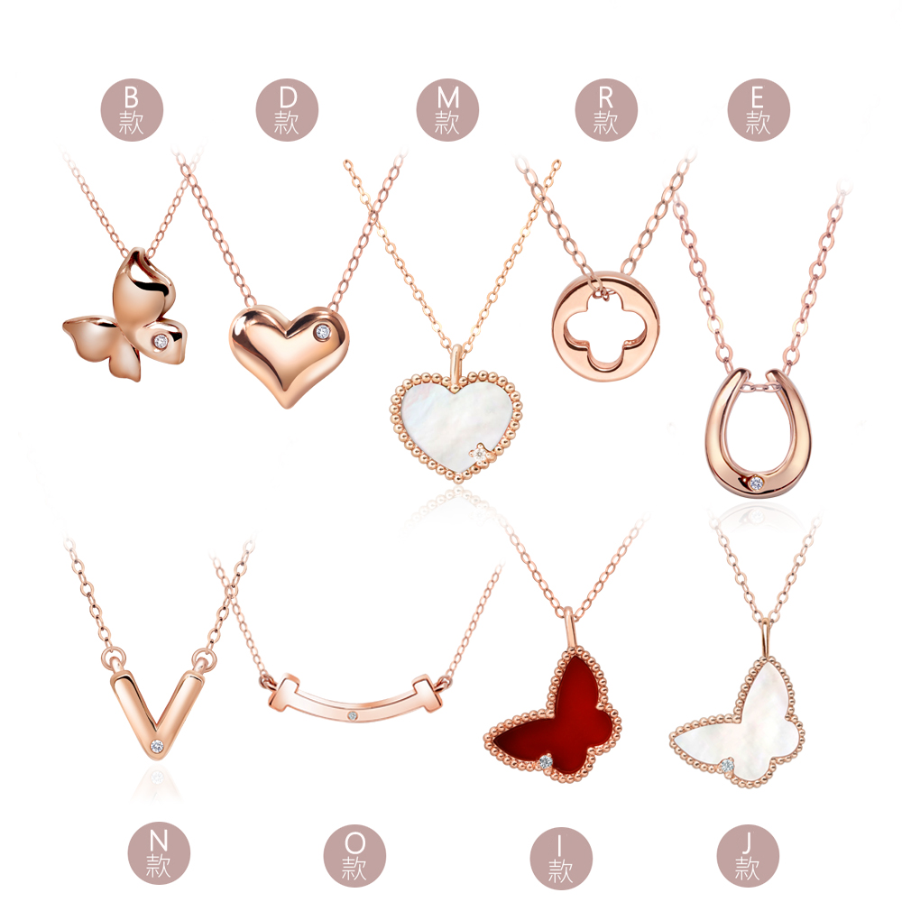 【King Star】18K金 玫瑰金 天然鑽石項鍊 贈18K金鍊(多款任選)