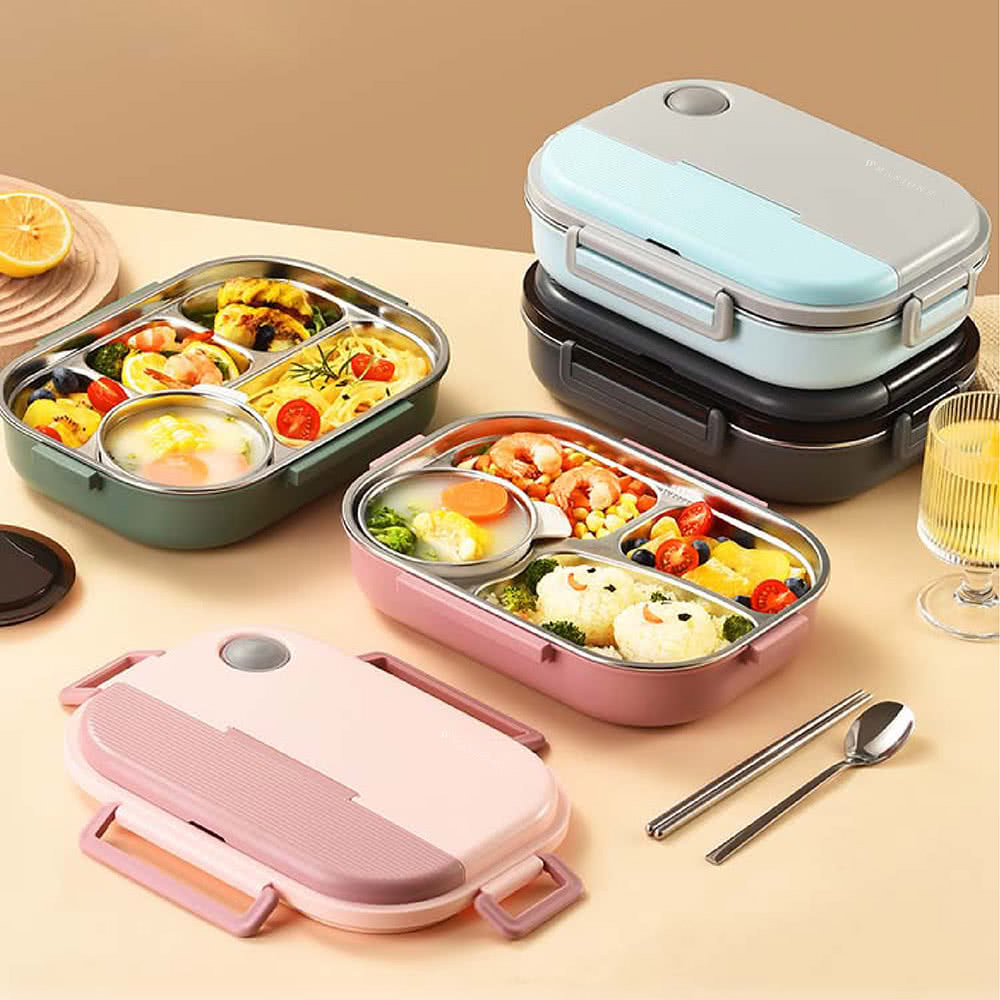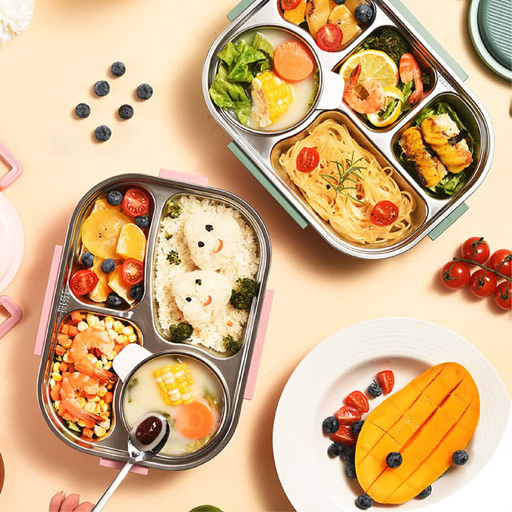 【MASIONS 美心】可微波 PREMIUM 皇家316不鏽鋼分隔保溫便當盒 四格(附不鏽鋼餐具/雙層湯碗)