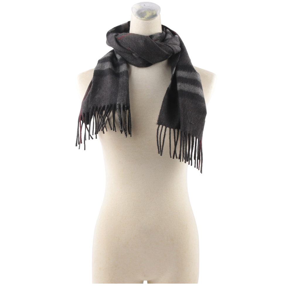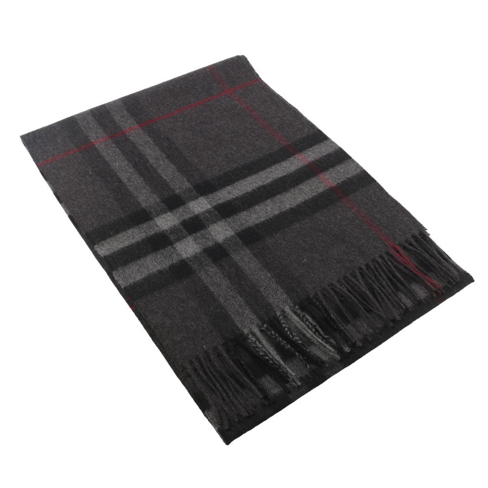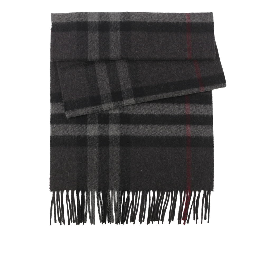 【BURBERRY 巴寶莉】基本款經典格紋喀什米爾圍巾(炭灰色)