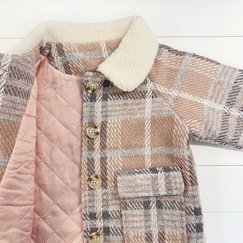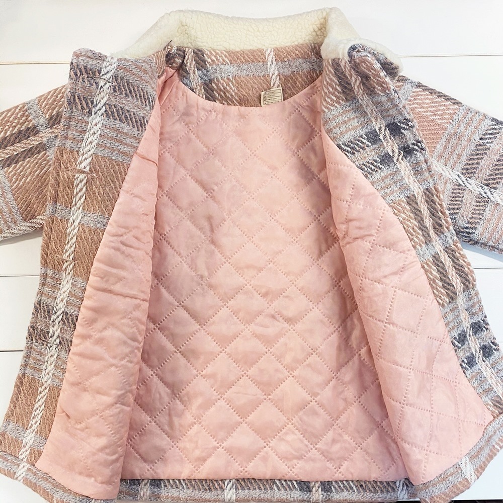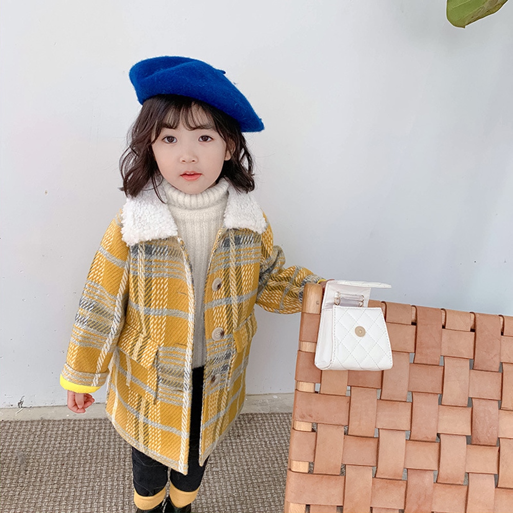 【橘魔法】繽紛獨特格子交叉線條長袖大衣外套(女童 厚外套 大衣 中童 外套 童裝 兒童 保暖)