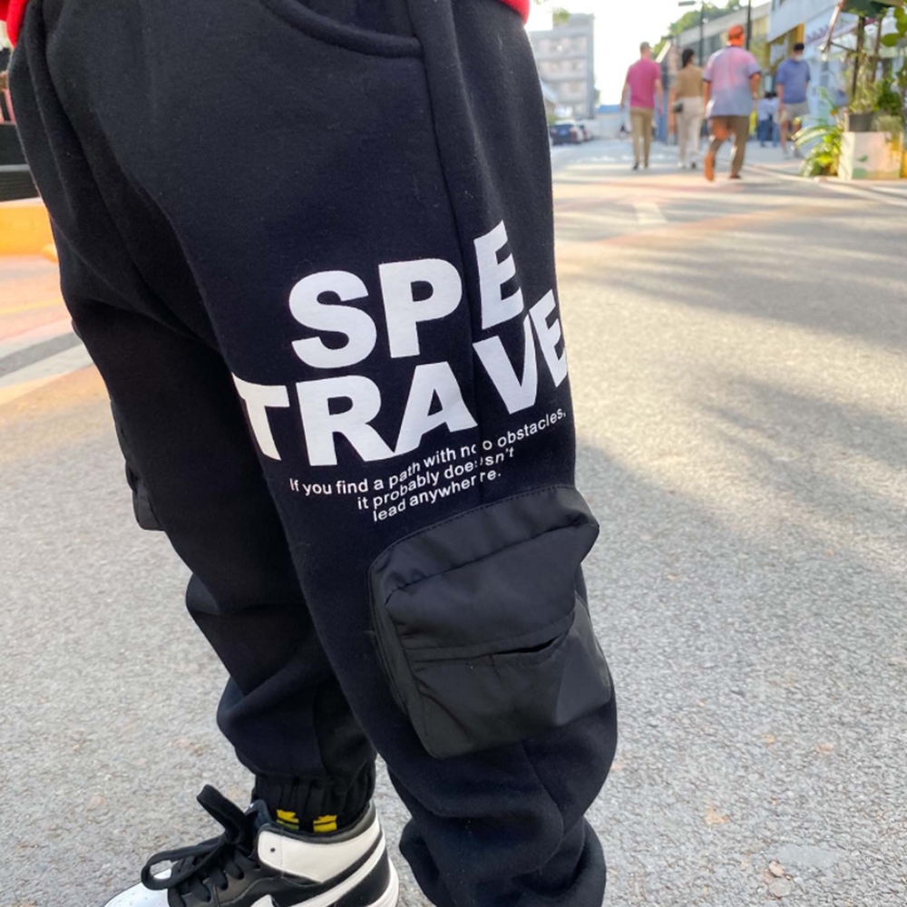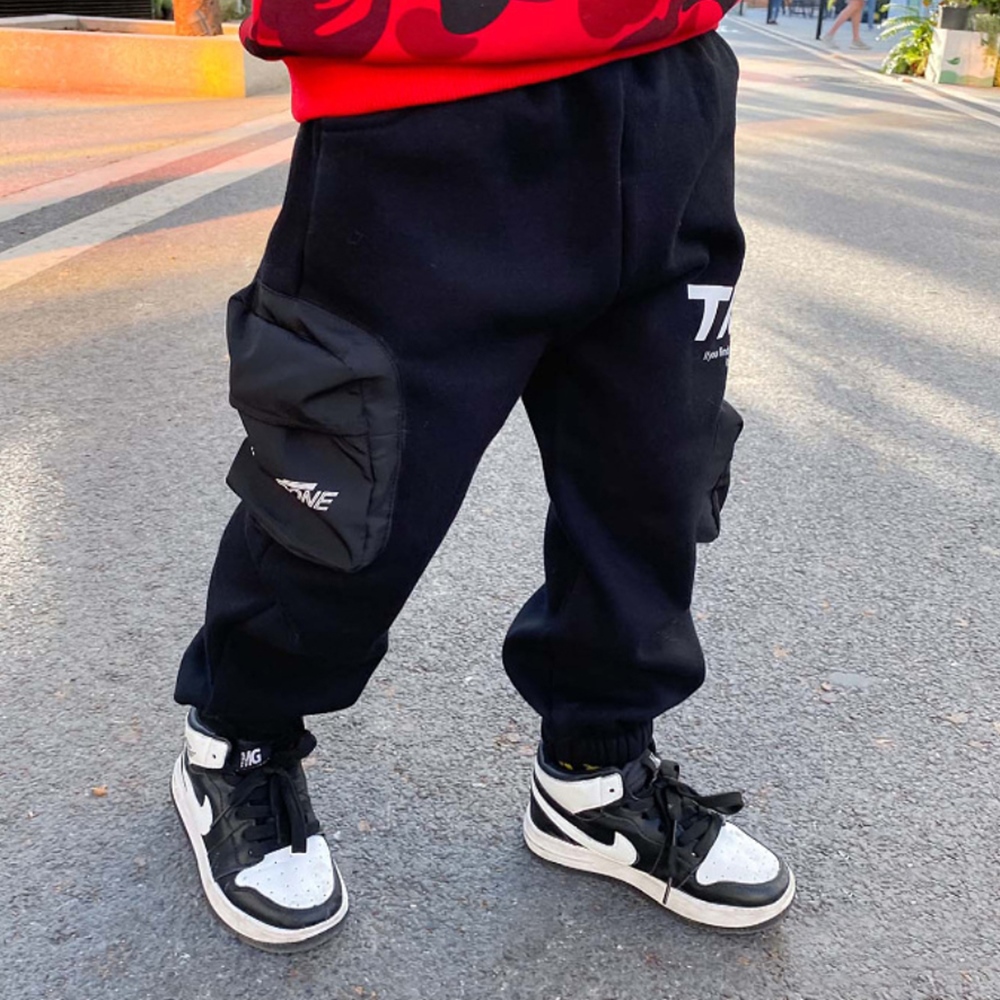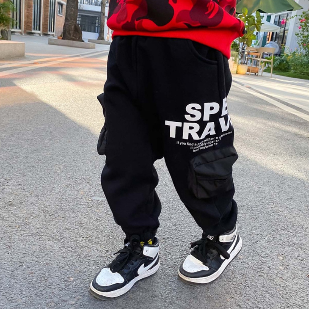 【橘魔法】側邊滑面口袋不倒絨鬆緊褲頭縮口長褲(大童 棉褲 男童 長褲 縮口褲 童裝 褲子 童裝)