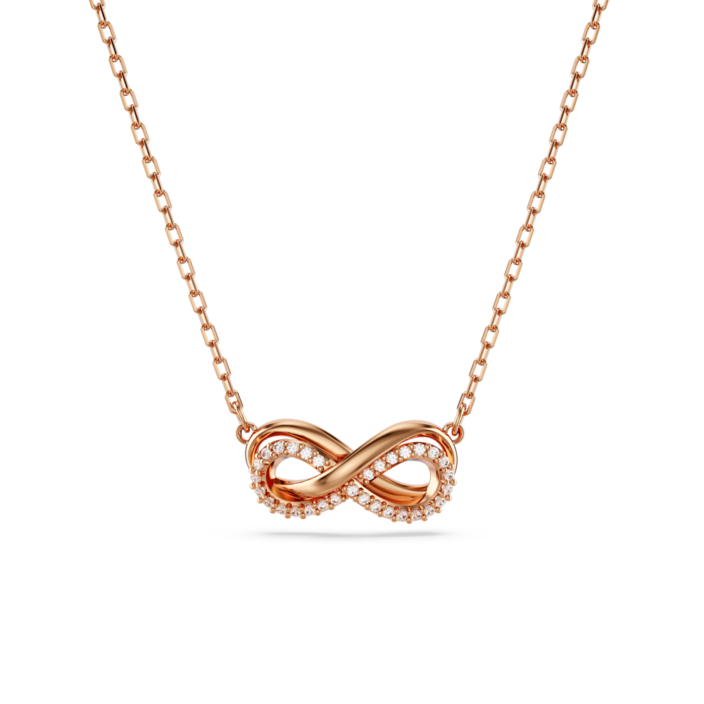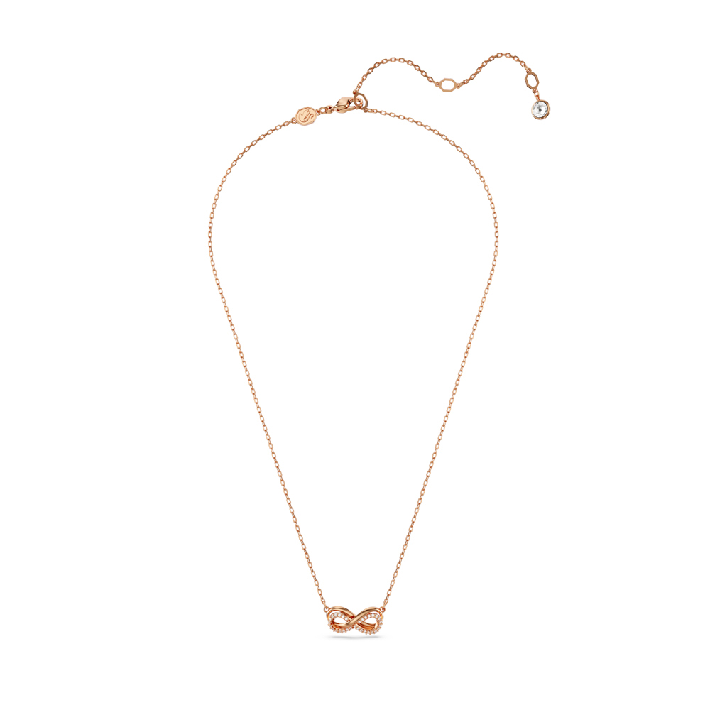 這款炫目的 Hyperbola 鏈墜以其無限符號而獨樹一格,代表經得起時光考驗的永恆美感。鍍玫瑰金色調珠寶搭配精緻的鏈條,其優雅的圖案飾有密鑲的透明 Swarovski 水晶。延長鏈鑲嵌了單顆 Swarovski 鋯石,更添奢華氣息。餽贈心愛之人,或為您的日常風格增添光彩。