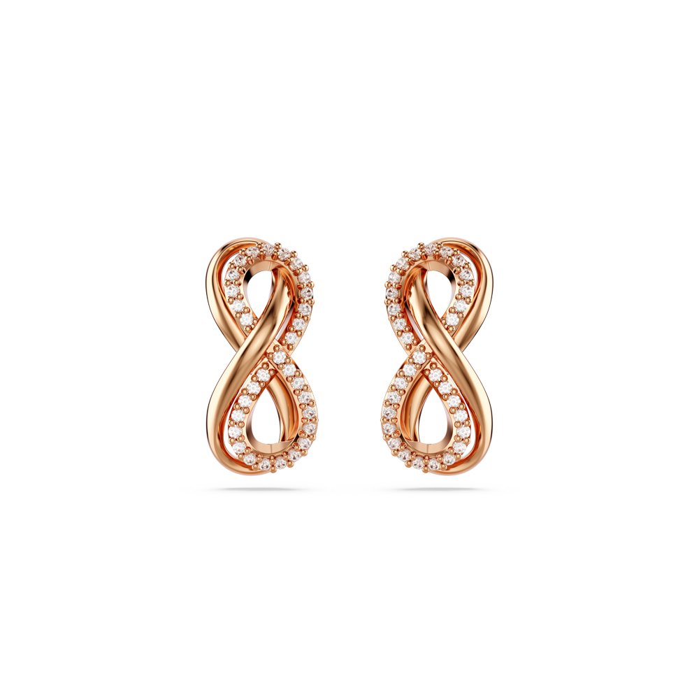 這款吸睛的 Hyperbola 耳環是您可以永久佩戴的款式。每只鍍玫瑰金色調耳環均精心打造成無限符號造型,並飾有一連串透明 Swarovski 鋯石。永恆而優雅,可以與成套的鏈墜搭配,也可以單獨佩戴,營造出低調奢華感。