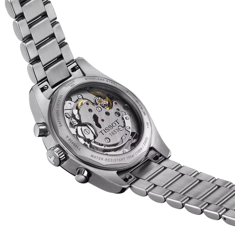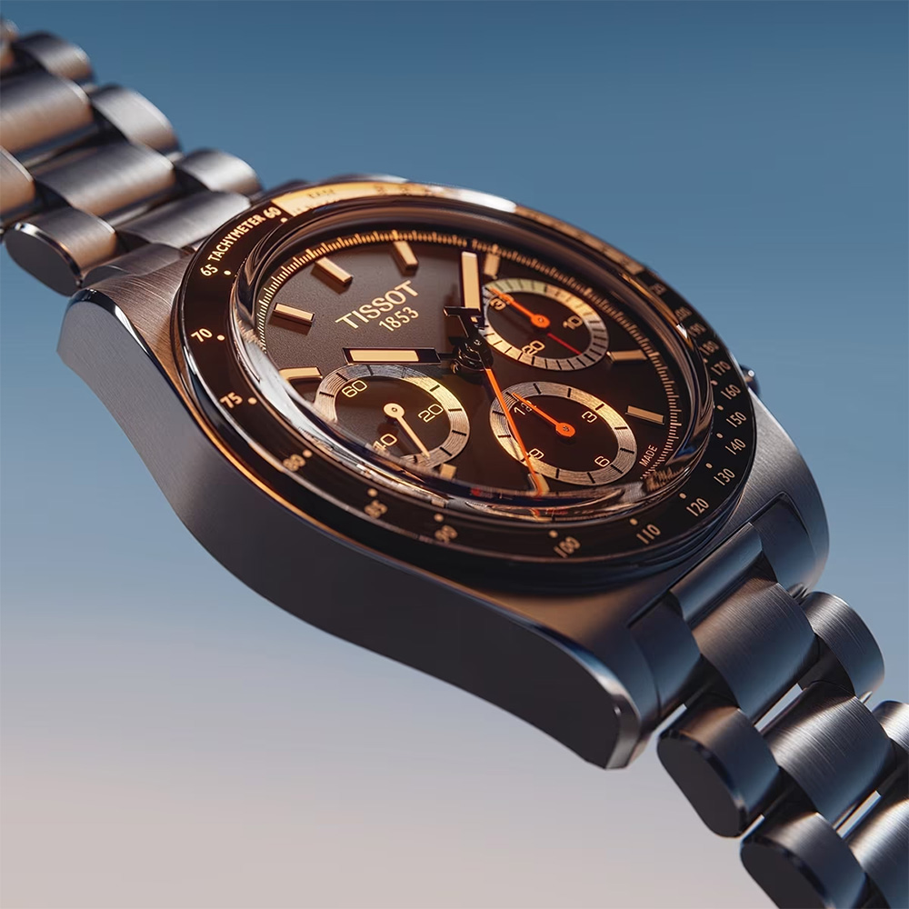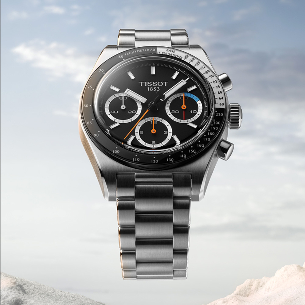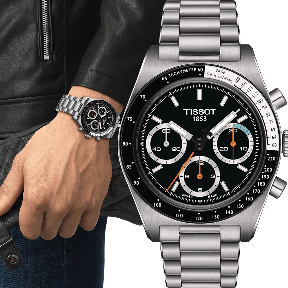天梭 PR516 機械計時腕錶:其目的是向天梭 1970 年傑出錶款來致敬。 這款腕錶採用 41 毫米精鋼錶殼和「Glassbox」微拱藍寶石水晶玻璃錶鏡則讓外觀更突顯出高級質感。 其核心是瑞士手動上鍊機芯,透過可透視後底蓋可見,展示了複雜精細的機械結構。 錶盤採用 Super-LumiNova®️ 塗層時標和指針,確保在任何環境下的可讀性。 錶圈上的測速儀增添了一些功能性。 其多功能設計與快速更換裝置的精鋼錶鍊相得益彰,非常適合從商務會議過渡到休閒外出的場合。 PR516 機械計時腕錶是一款精緻的腕錶,適合欣賞永恆雋永設計和喜愛機械精度的腕錶鑑賞家擁有。