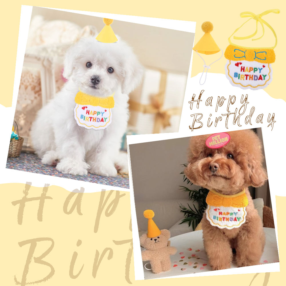 【派對焦點】韓系刺繡寵物生日圍兜+帽子2件套(寵物衣服 生日領巾 貓咪 狗 口水巾 生日帽 裝飾 慶生道具)
