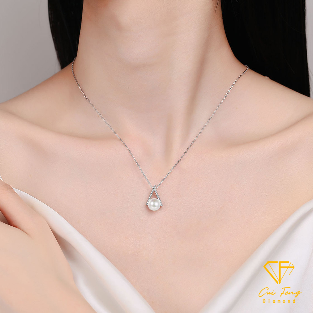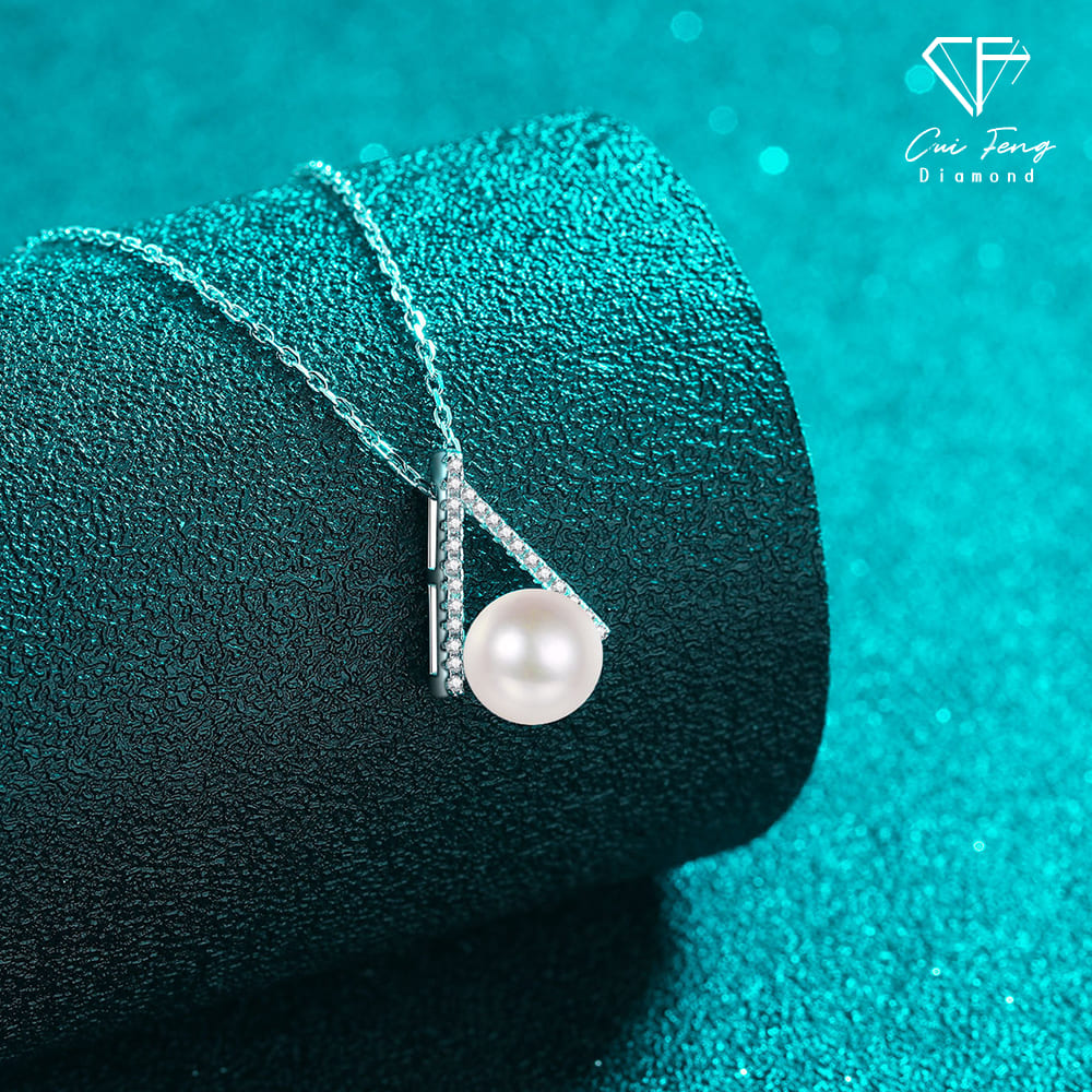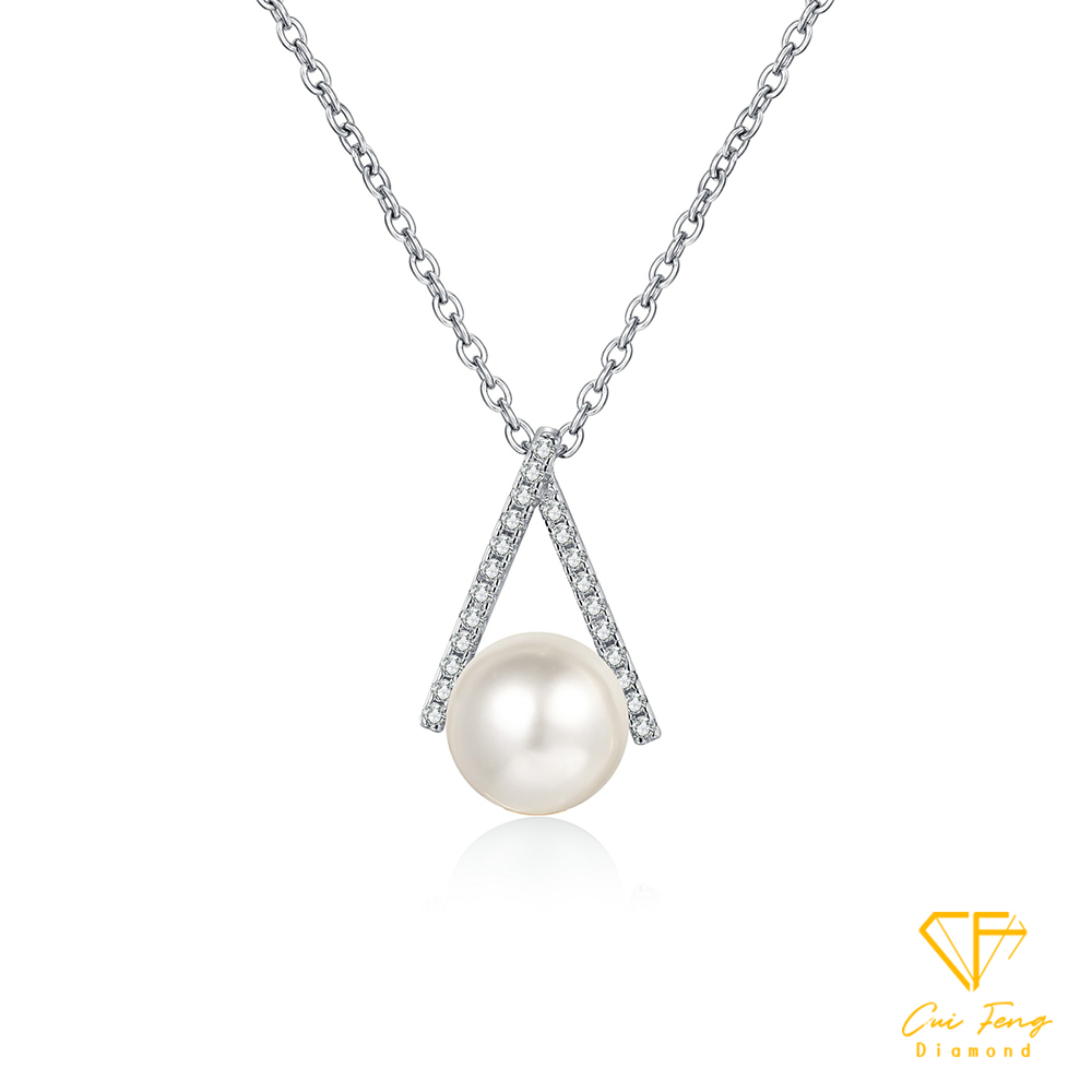 【CF鑽飾】項鍊 天然淡水珍珠X莫桑鑽《珍愛典藏》雙11限定(11分 天然淡水珍珠 項鏈 禮物 生日)