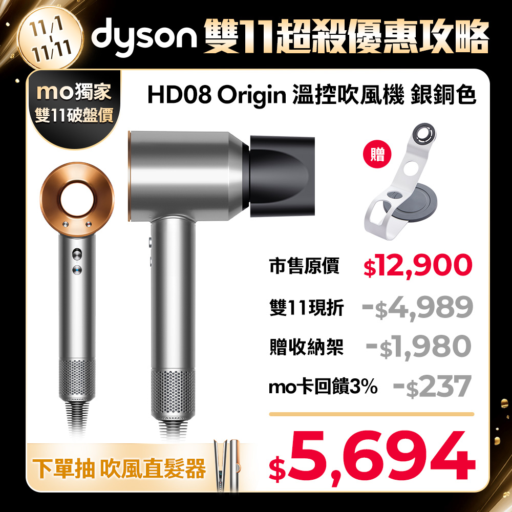 【dyson 戴森】HD08 Origin Supersonic 吹風機 溫控 負離子(銀銅色)
