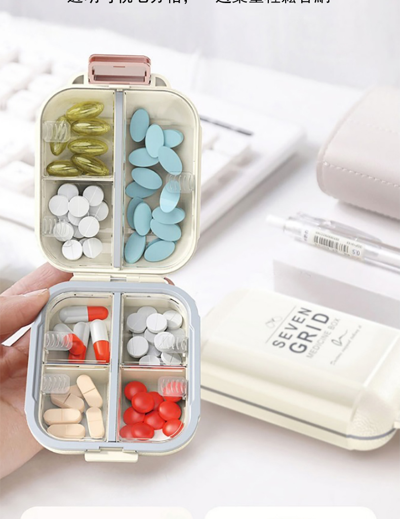 【Londee】旅行便攜式密封7格藥盒 藥品藥物收納盒 交換禮物(密封盒 分裝藥盒 隨身藥盒 防塵防潮)