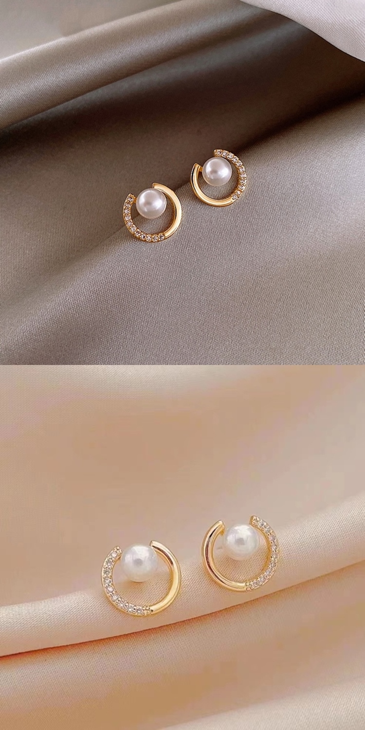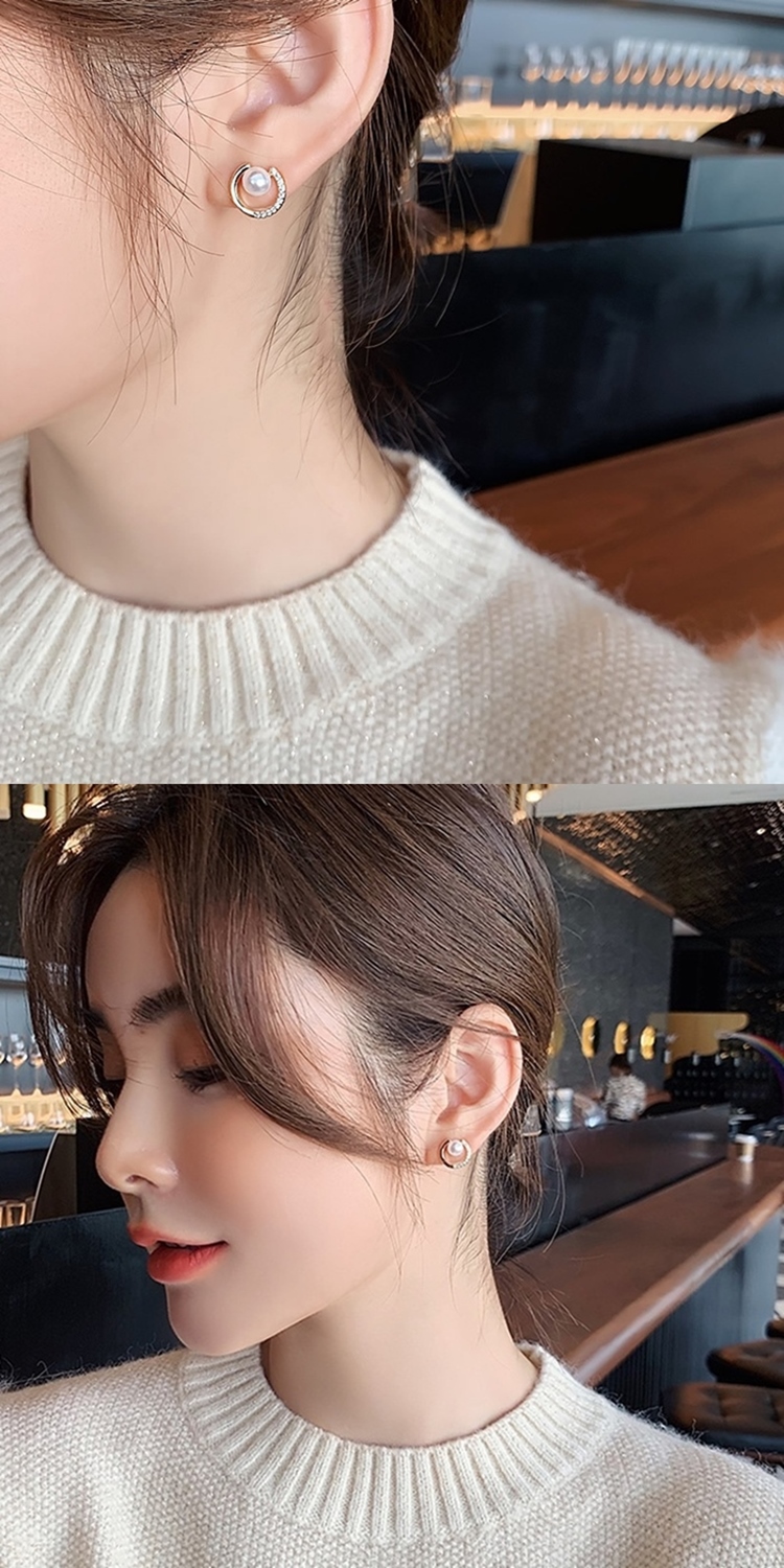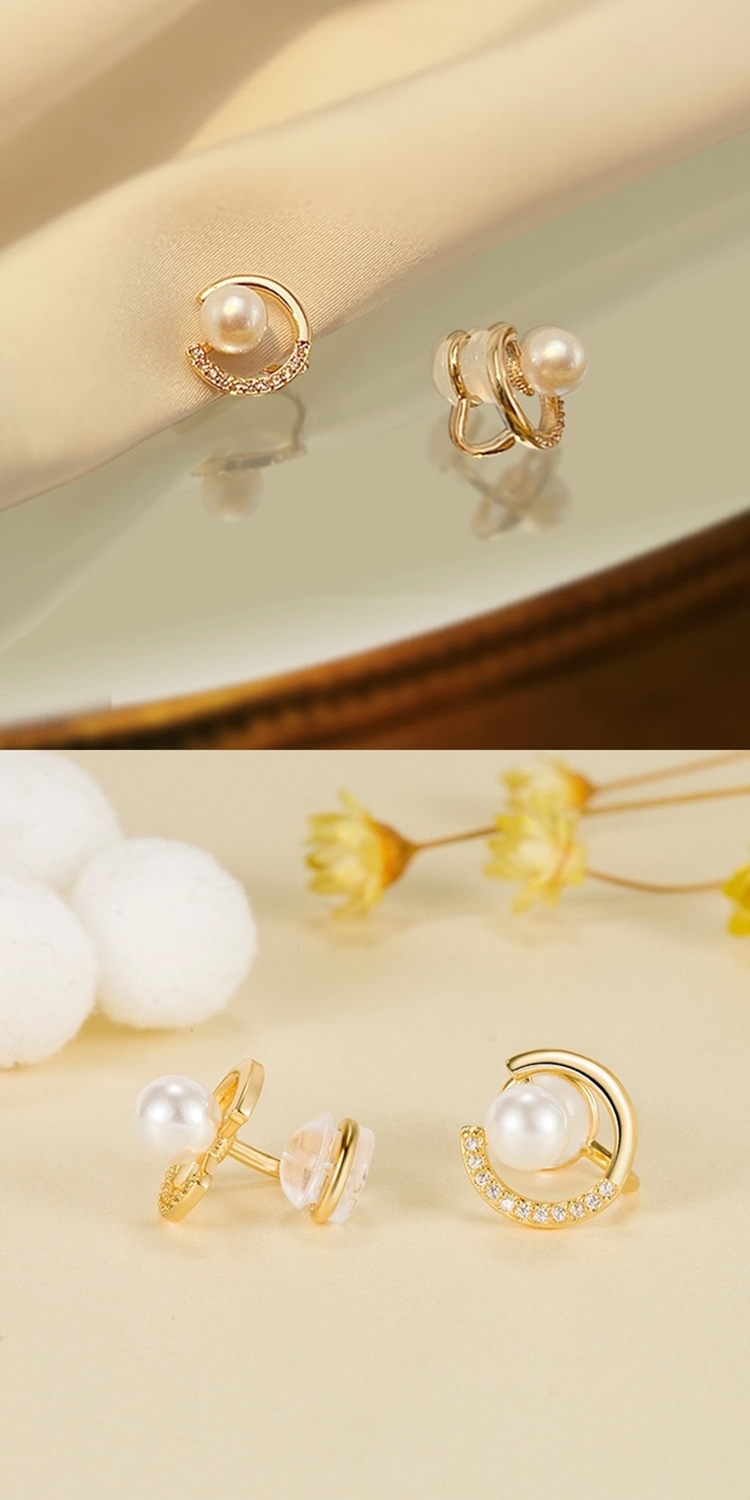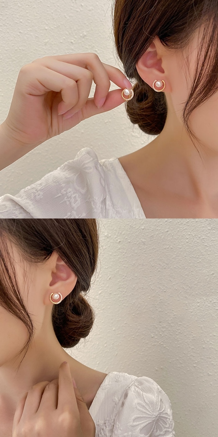 【Emi 艾迷】劉亦菲同款 氣質光彩珍珠鋯石 耳環耳夾 無耳洞 夾式耳環(耳針式/蚊香盤耳夾)