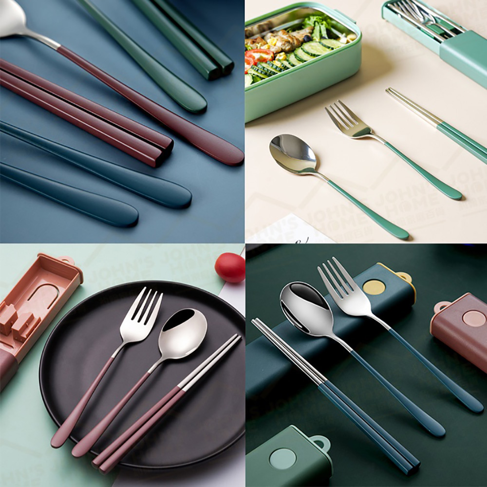 【JOHN HOUSE】304不鏽鋼抽拉式餐具組 環保餐具 隨身餐具 環保筷(筷勺兩件套)
