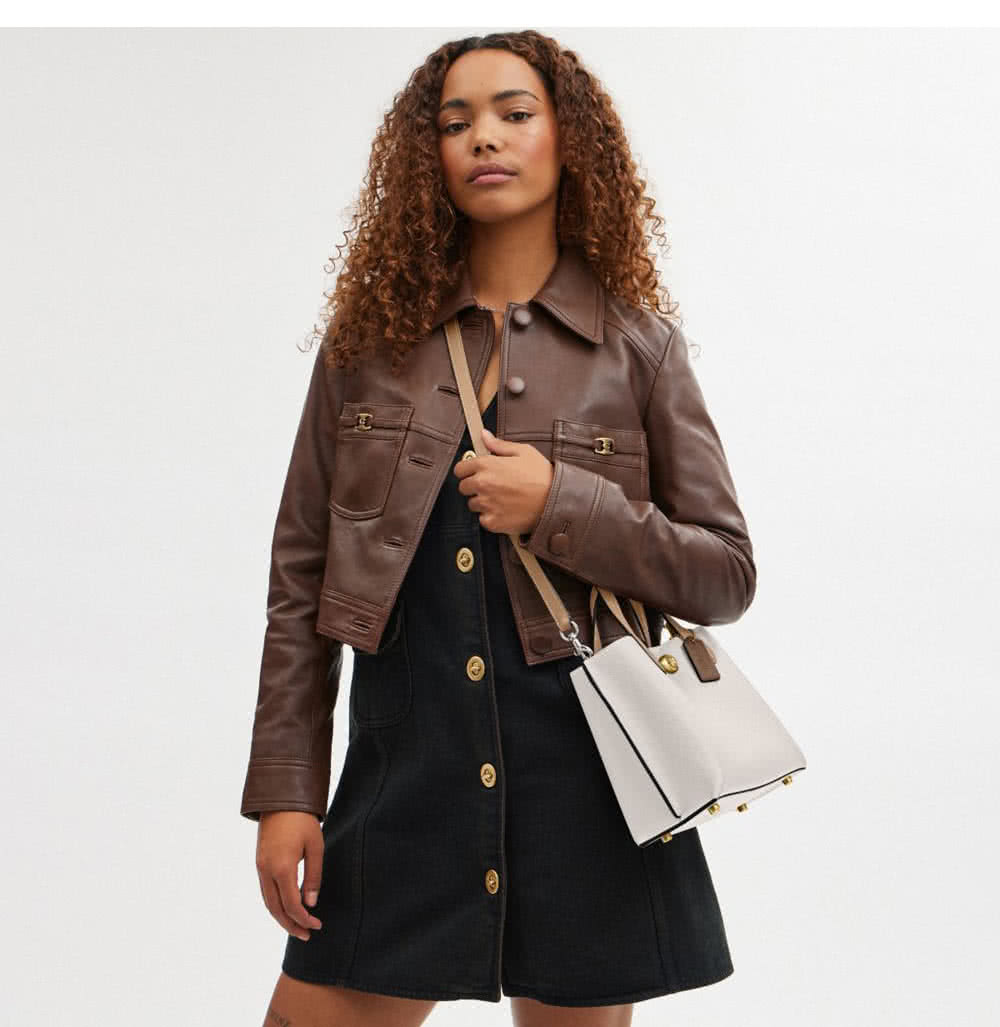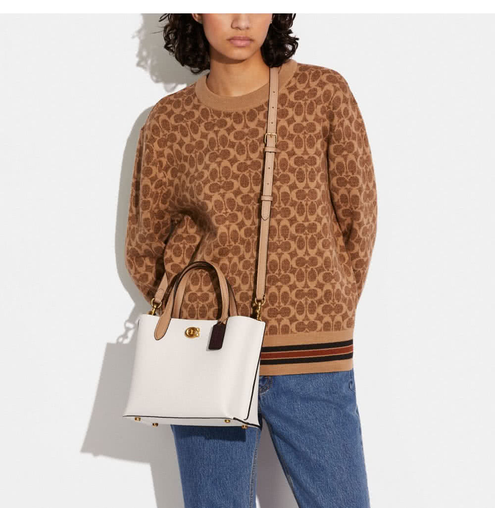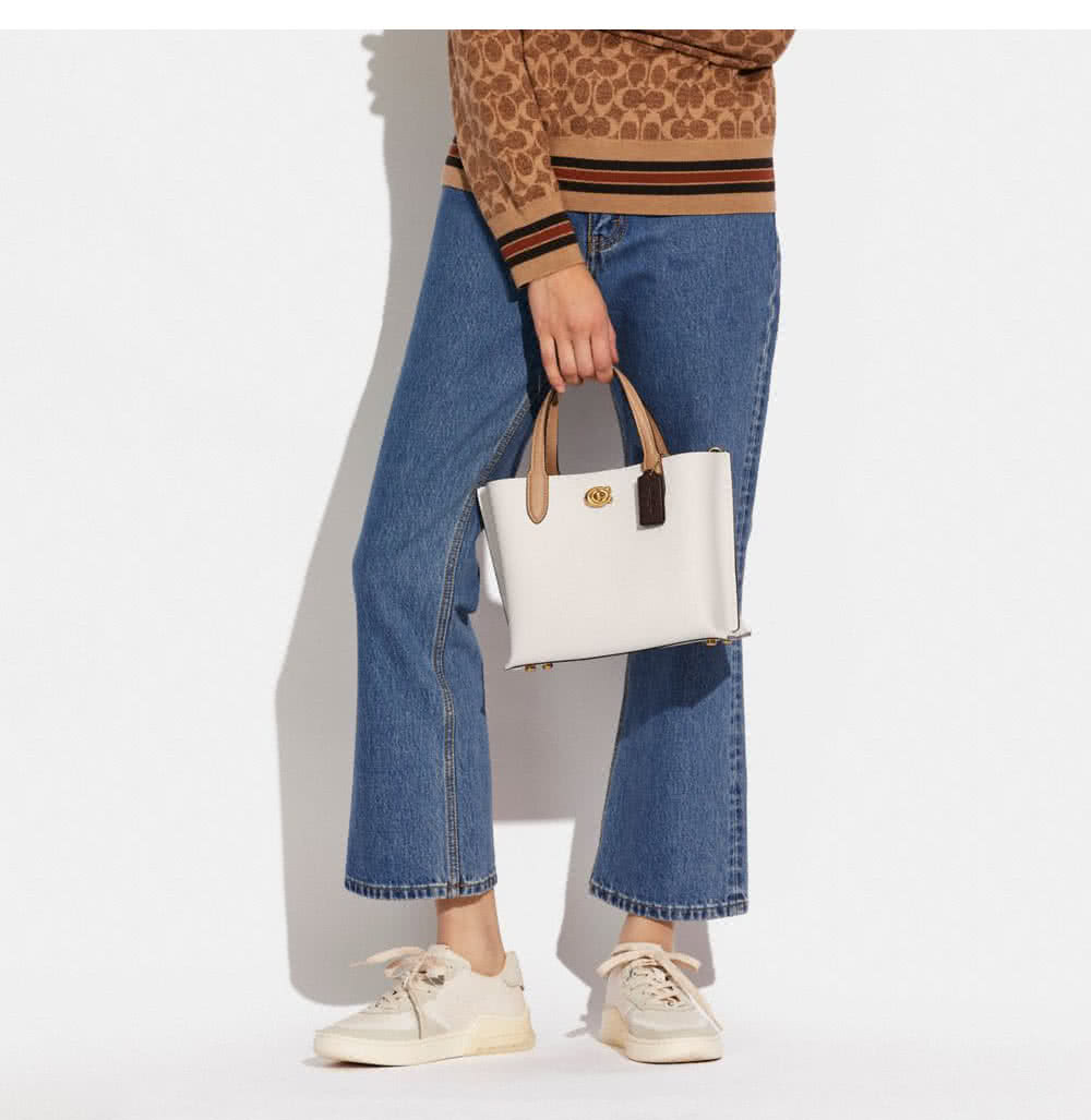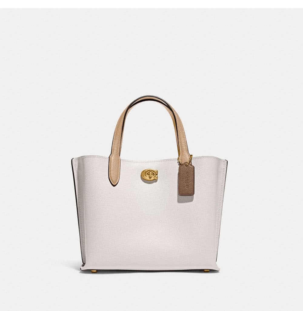 【COACH】蔻馳官方直營 WILLOW24 撞色托特包 托特手袋-粉筆白色混合色(C8561)
