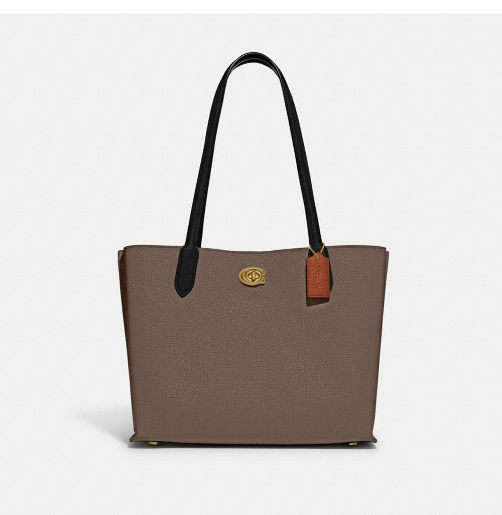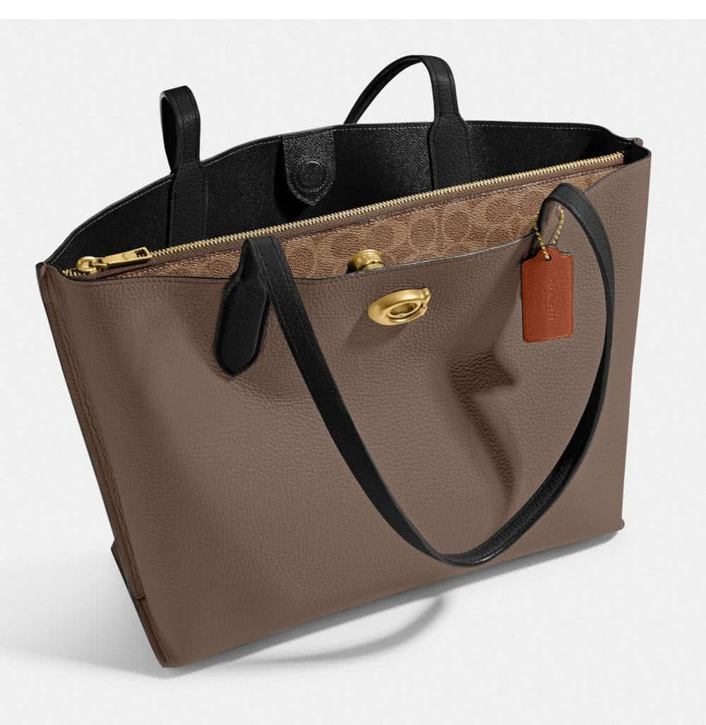 【COACH】蔻馳官方直營 WILLOW經典 SIGNATURE 帆布襯裡撞色托特手袋 托特包-深石灰色(C0692)