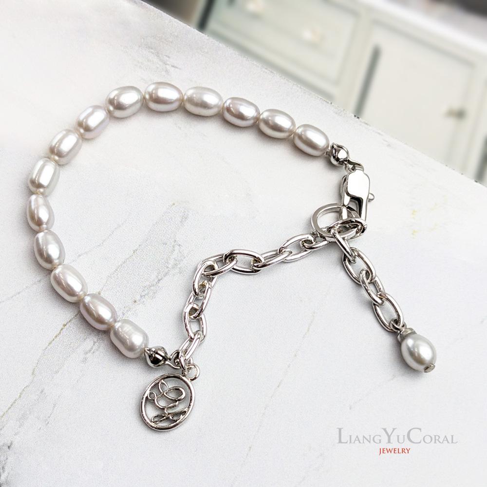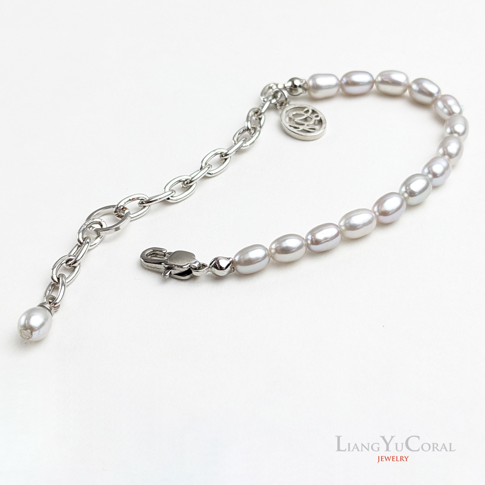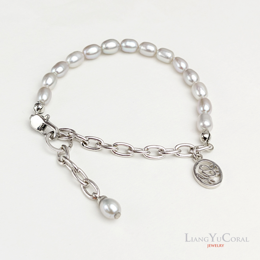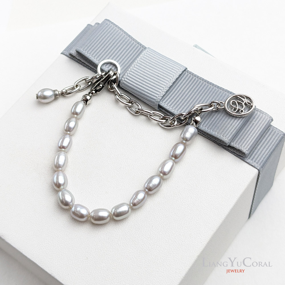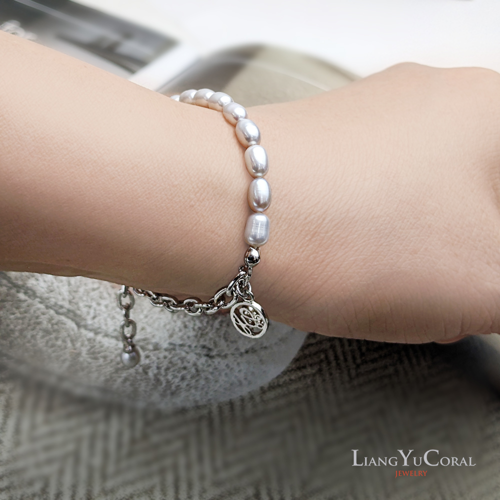 【大東山樑御珊瑚】天然珍珠鋼質手鍊(涼灰白4.5~5mm)