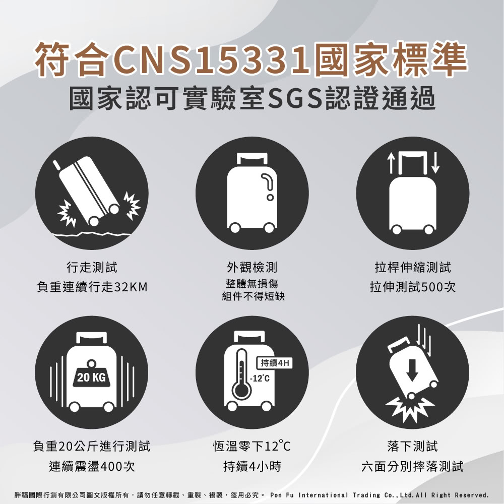 PN8 材質 : 採用高品質 PC+ABS 塑料材質,霧面防刮設計,箱體輕量有彈性、耐衝擊