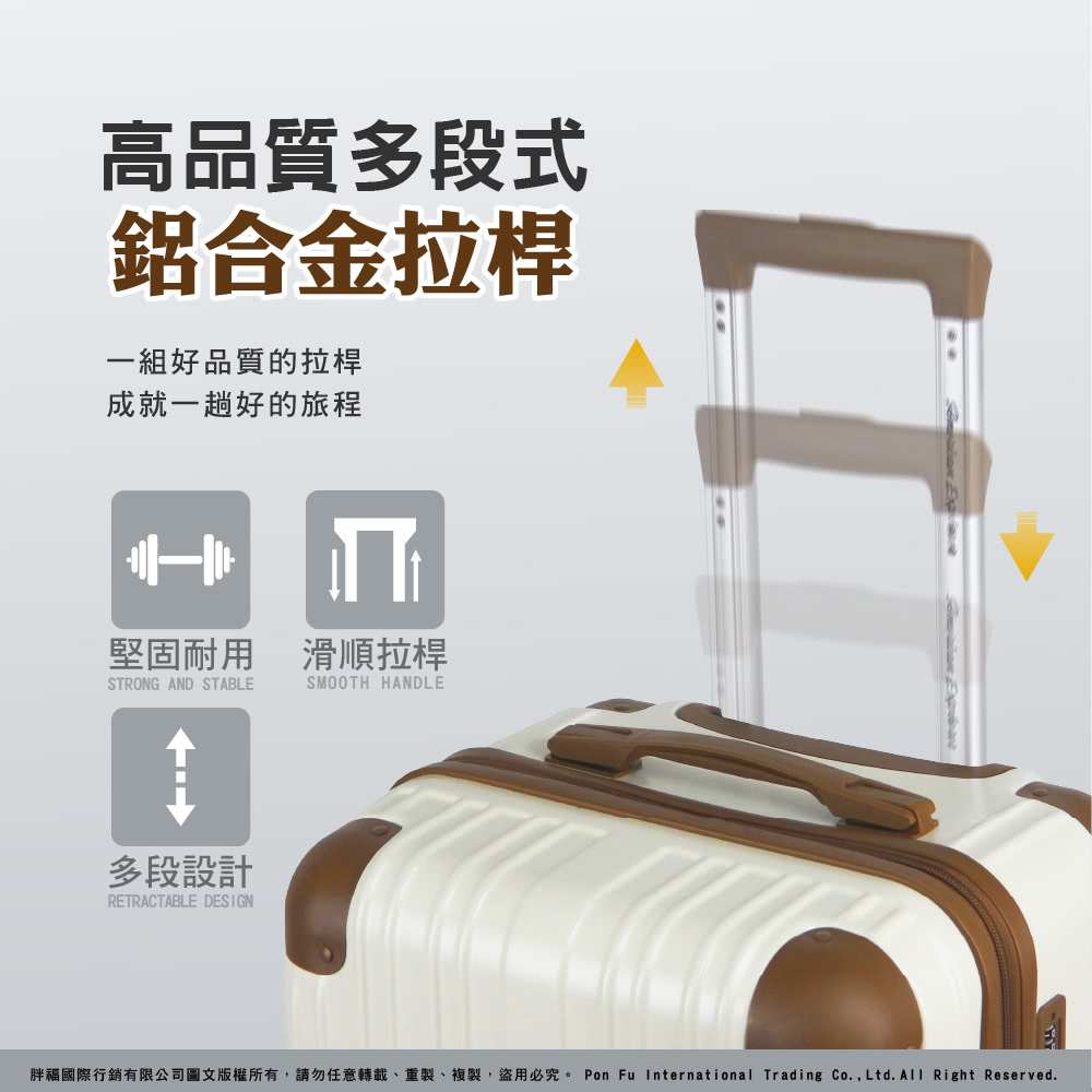 PN8 拉桿 : 採用多段式鋁合金拉桿設計,滑順耐用好收拉,可自由調整高度