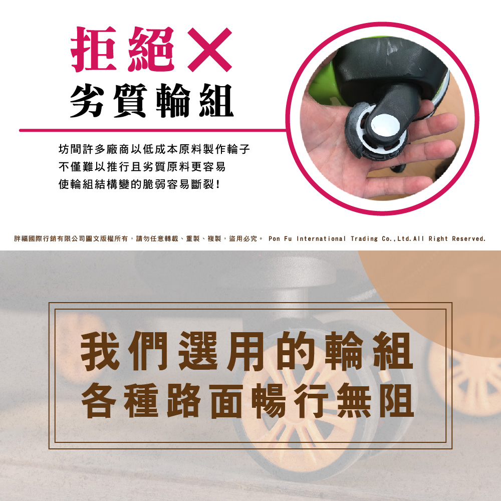 AP2 輪子 : 採用雙排靜音飛機大輪組,輪組穩定好推拉,可360度萬向旋轉,超順暢,適用各種地形