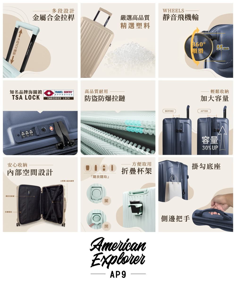 AP9 材質 : 採用高品質 ABS 塑料材質,箱體輕盈、韌性高、耐衝擊