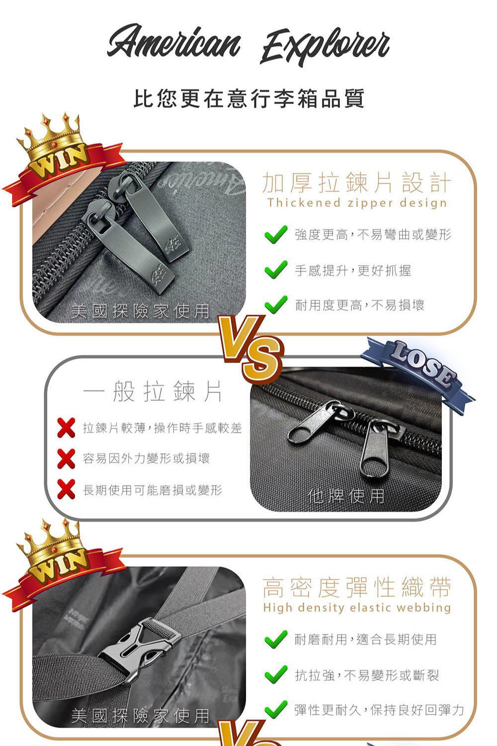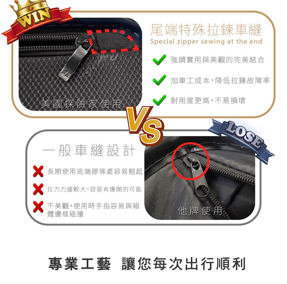 M22-PLUS 拉鏈 : 採用雙層防盜/防爆拉鏈,加強行李箱最重要的部分,比一般拉鏈堅固耐用數倍
