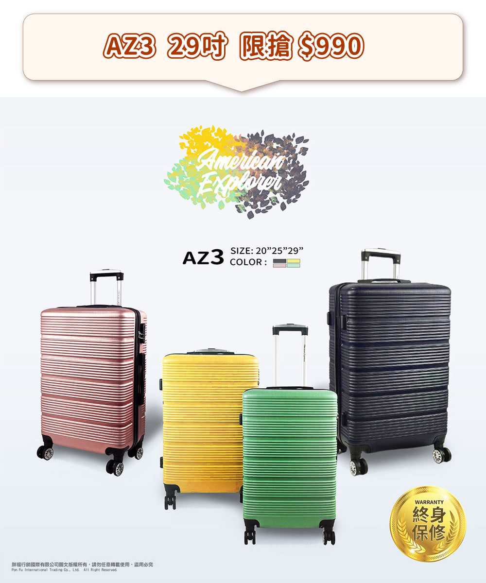 AZ3 材質 : 採用高品質ABS精選塑料,箱體輕盈、耐衝擊