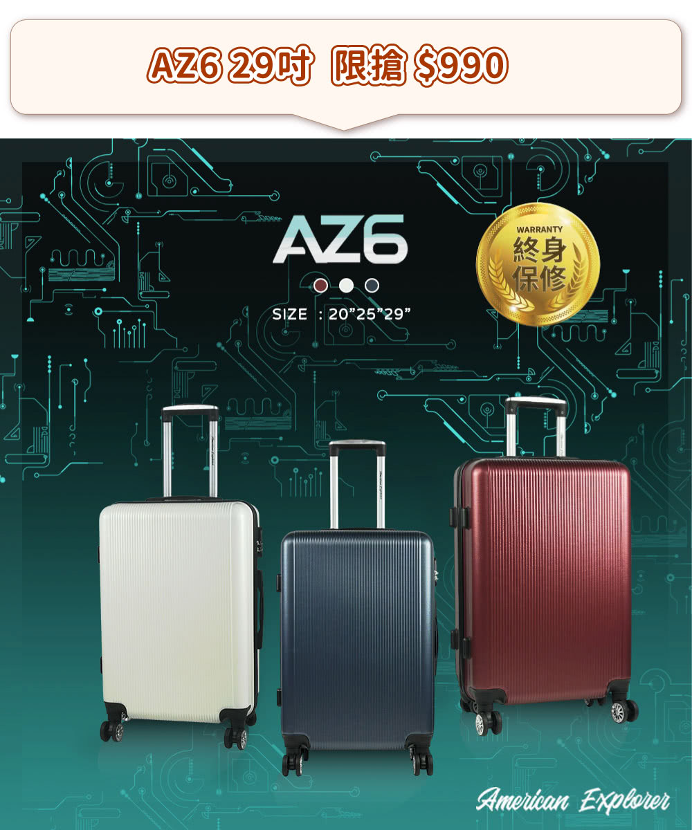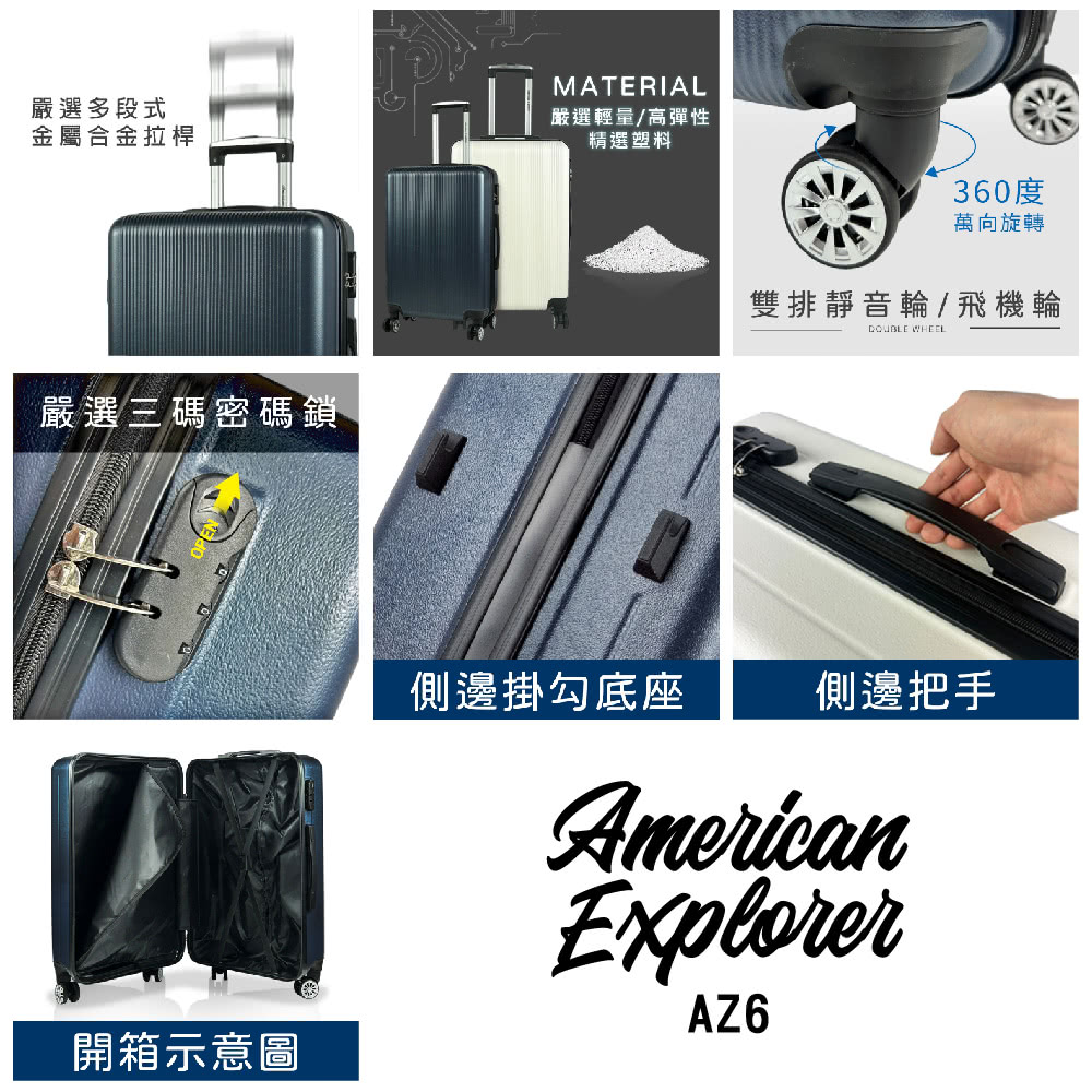 AZ6 材質 : 採用高品質ABS精選塑料,箱體輕盈、耐衝擊