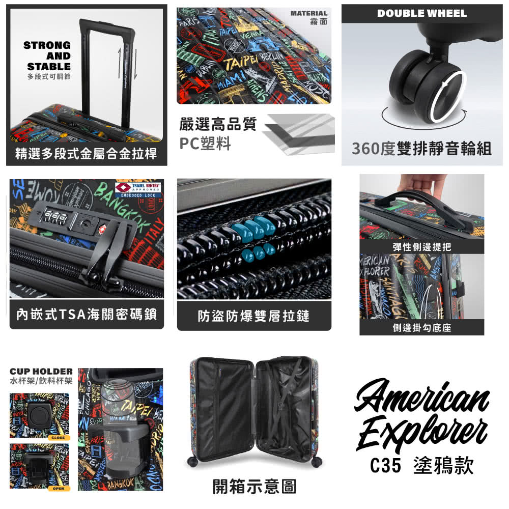 ● 街頭風塗鴉設計,獨特兼具時尚,不易撞箱,成為旅程的完美配件