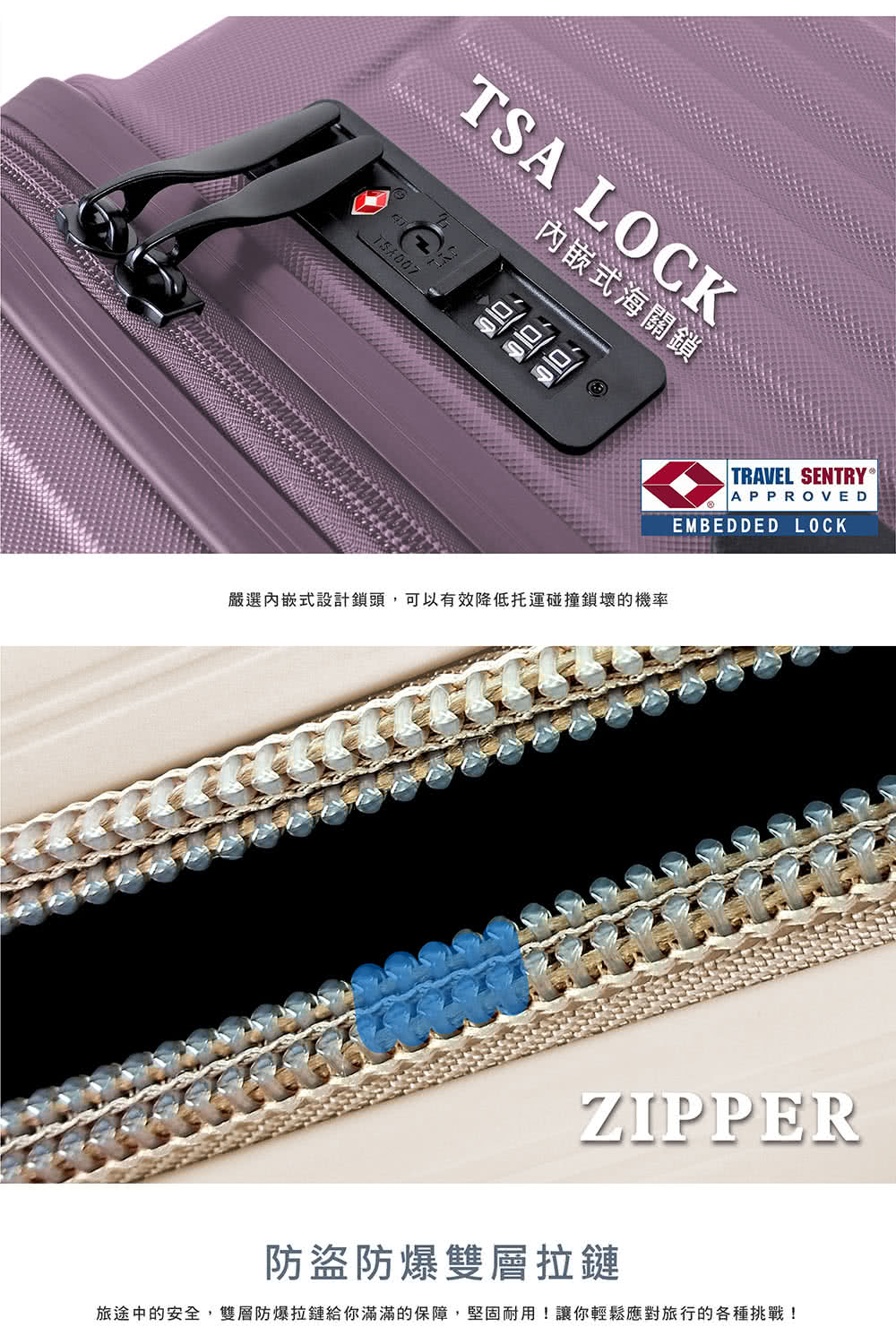 PN5 鎖頭 : 設有內嵌式TSA國際海關密碼鎖,前往歐美國家旅遊,通關快速又方便