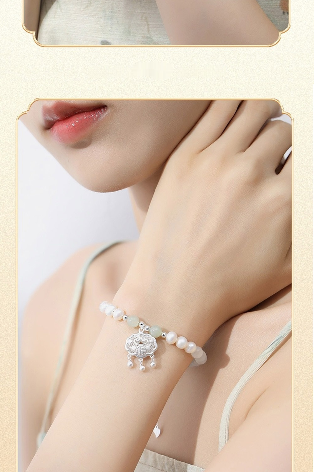 【LEEHER】雙11 串珠手鍊/千足銀手鍊/手環/天然貓眼石/珍珠手鍊/手鍊/平安鎖手鍊/女手鍊/新中式
