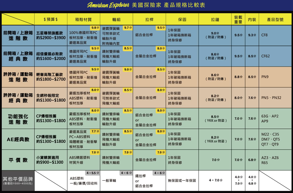 AP9 材質 : 採用高品質 ABS 塑料材質,箱體輕盈、韌性高、耐衝擊