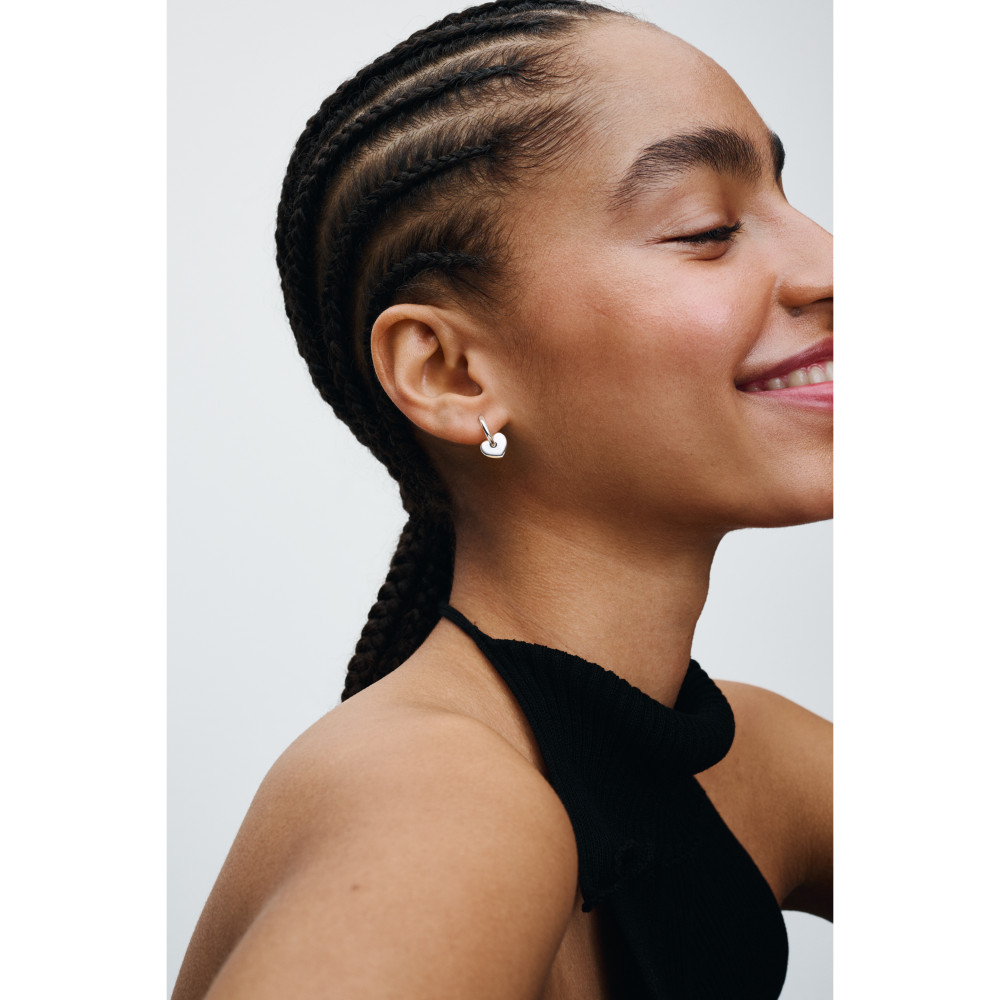 靈動懸掛的愛心象徵心懷愛意面對世界。925 銀耳環圈飾以一只可活動愛心,面向前方,表達鮮明時尚宣言。搭配其他 Pandora Moments 心形耳環圈,表達重重愛意,或作為疊戴造型,展現獨特個性。