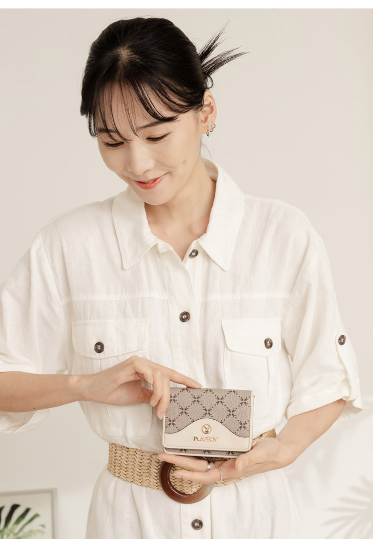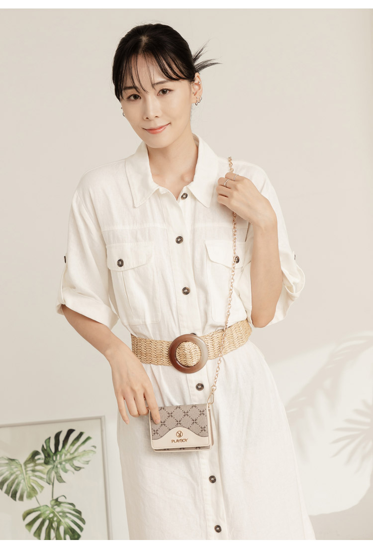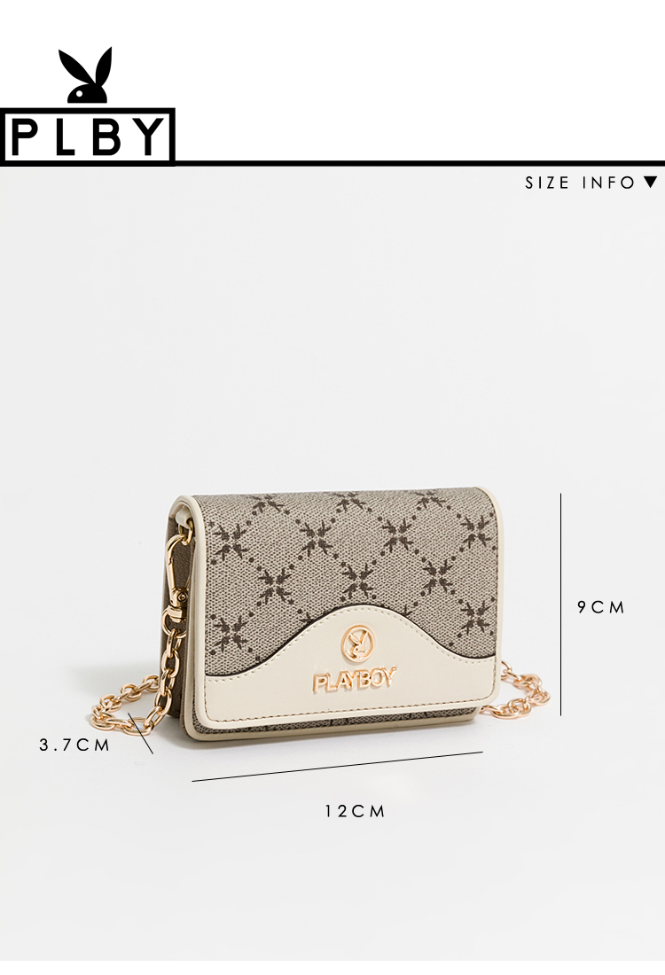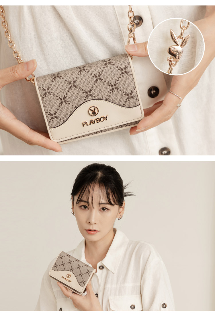 PLAYBOY - 卡片零錢包附長鏈帶 L'élégance系列 - 卡其色