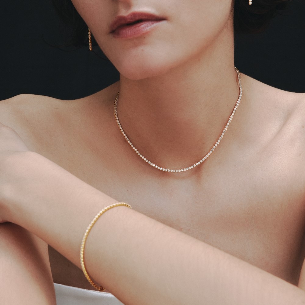 散發奢華光芒的寶石在肌膚上璀璨閃耀,展現華麗光澤。