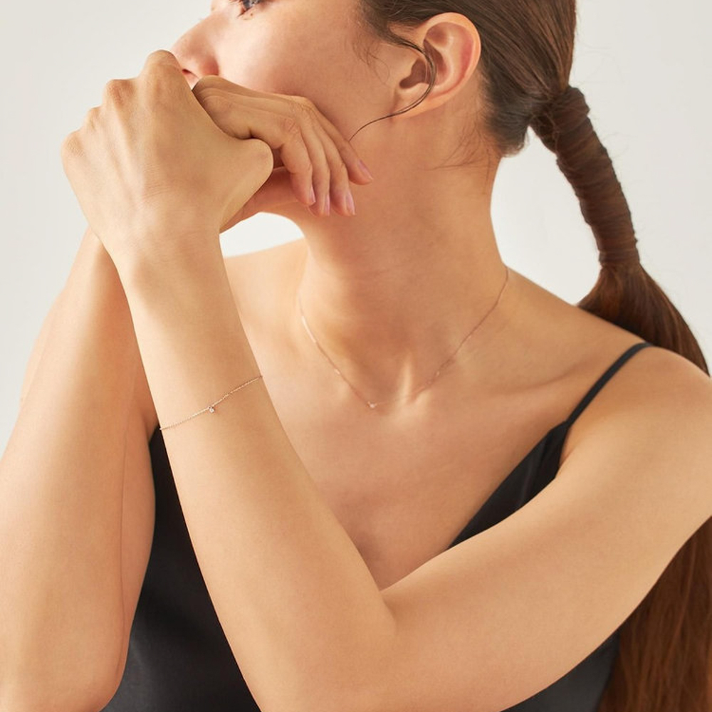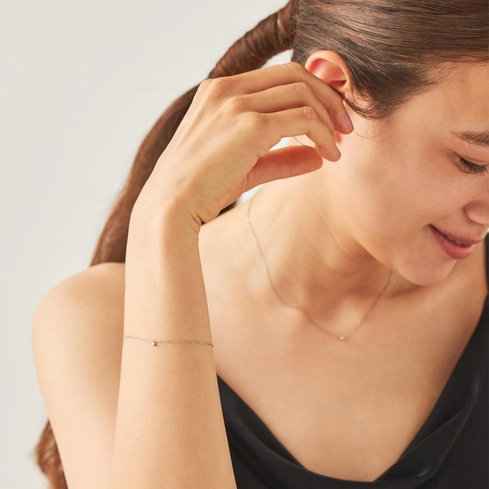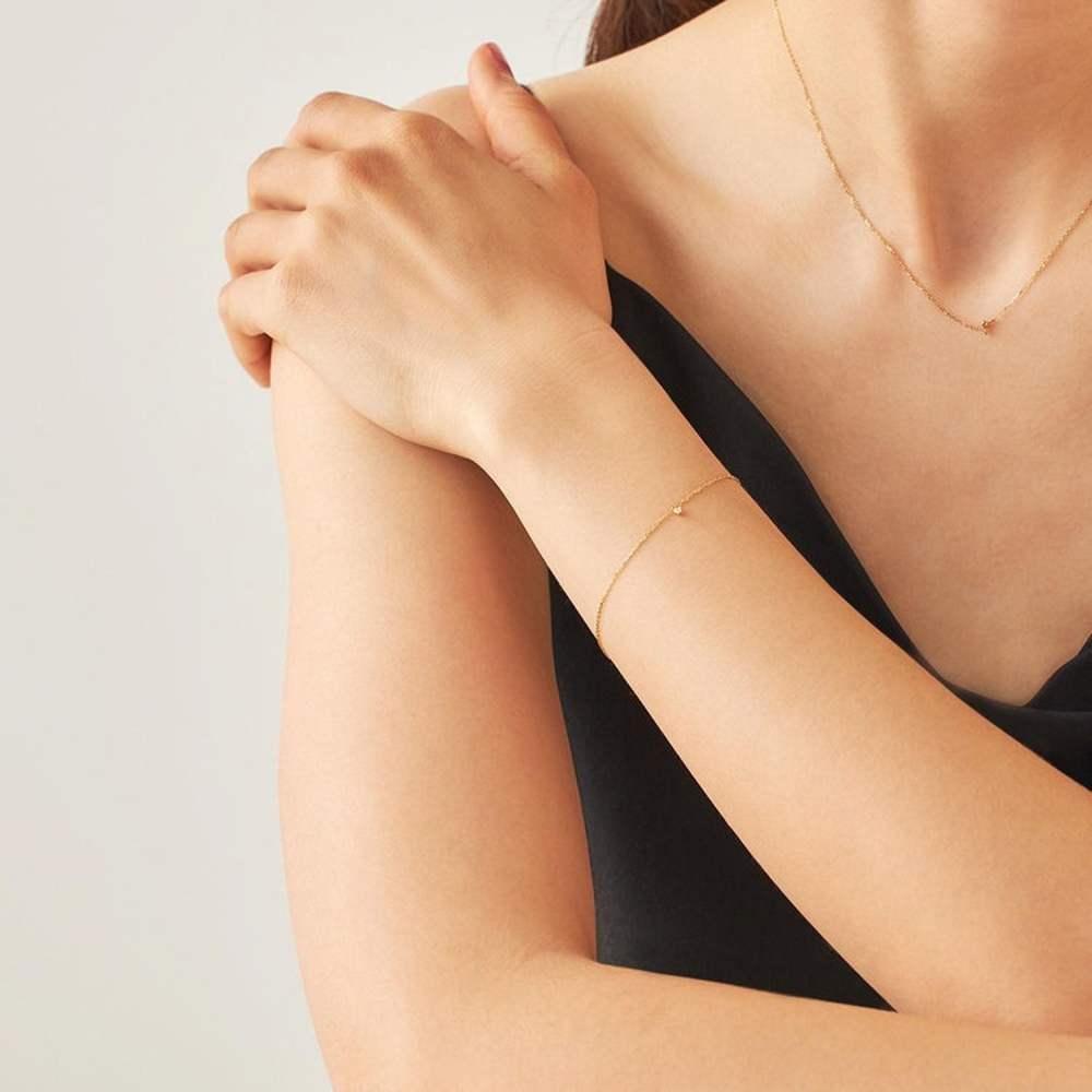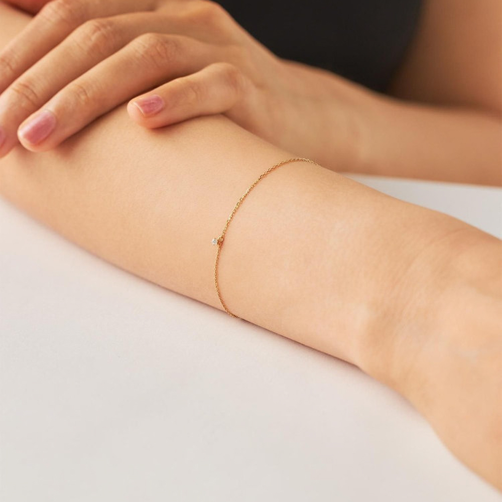 簡約設計襯托出鑽石的閃爍光芒,適合搭配任何場合或風格的單鑽手鍊。鑽石的五爪鑲嵌造型璀璨光芒,彷彿夜空中最耀眼的星星,於手腕間閃耀流轉著。捨去多餘的繁雜設計,不管是日常生活或是正式場合都很適合佩戴,為日常增添美麗焦點。以鑽石傳遞永恆的愛與堅定承諾,推薦作為送給所愛之人的禮物。調整尺寸:可(縮短)需收費,修改尺寸請親洽全國 ete 實體店鋪。※寶石(珍珠)為天然素材,寶石(珍珠)中的紋路、形狀、尺寸、色澤,皆為獨一無二,會有些許不同,仍屬正常現象,購買前請知悉。品牌故事|店櫃資訊|保養須知|尺寸指南|購物須知