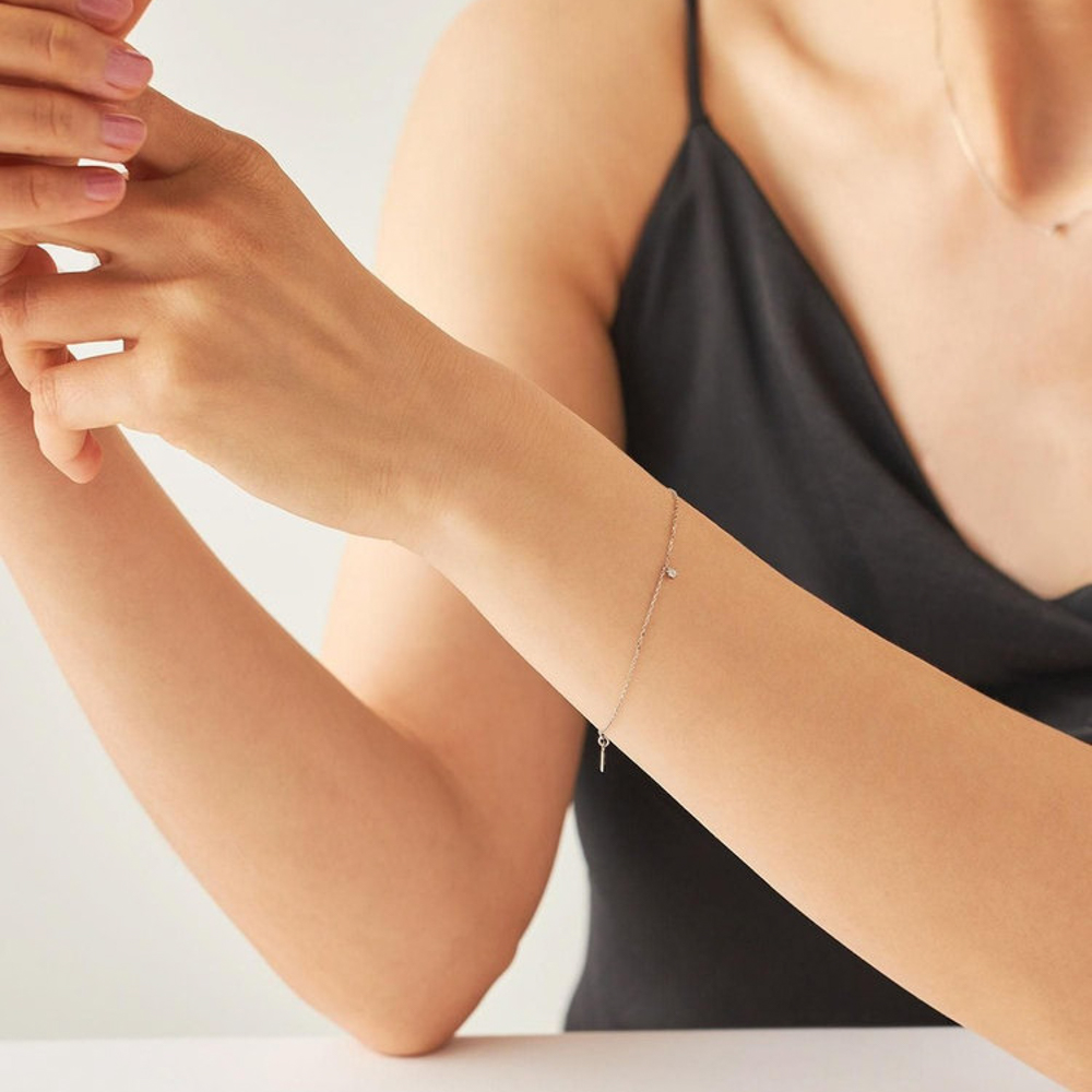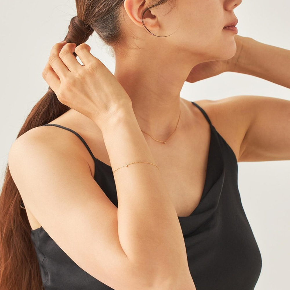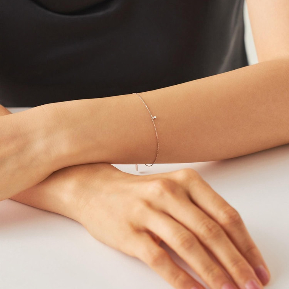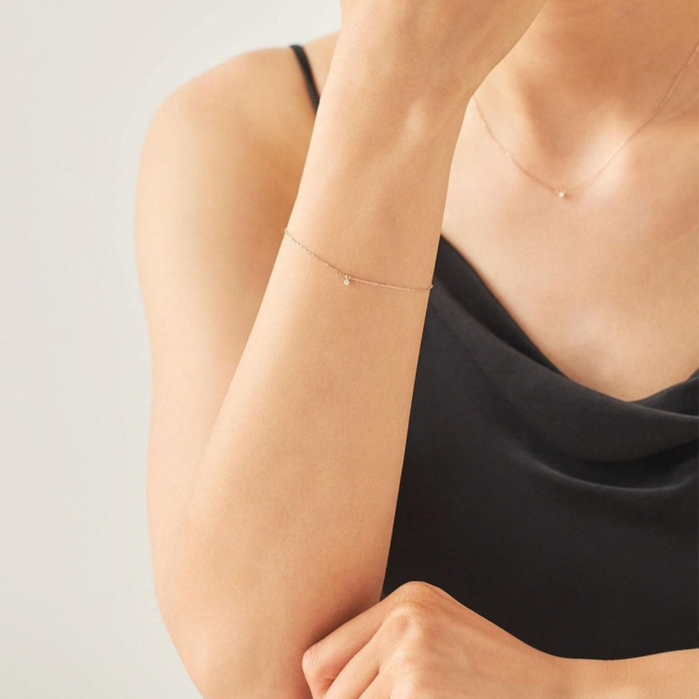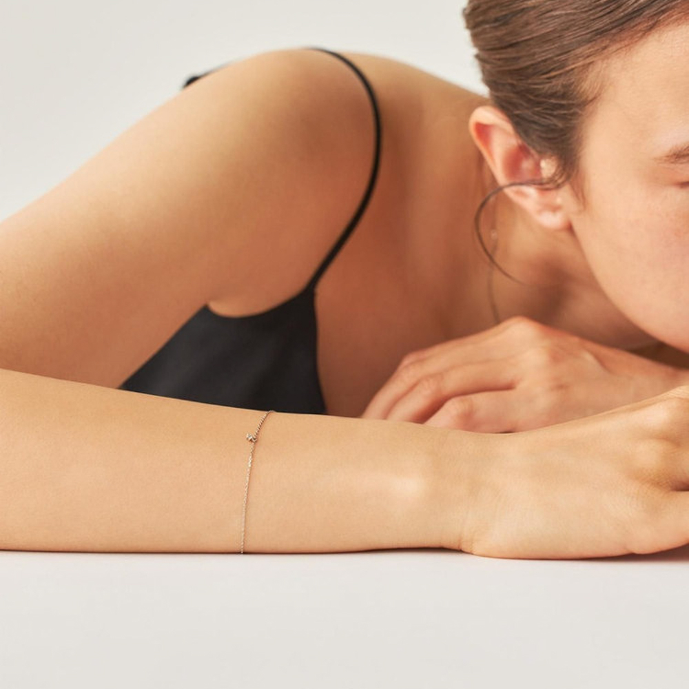 簡約設計襯托出鑽石的閃爍光芒,適合搭配任何場合或風格的單鑽手鍊。鑽石的五爪鑲嵌造型璀璨光芒,彷彿夜空中最耀眼的星星,於手腕間閃耀流轉著。捨去多餘的繁雜設計,不管是日常生活或是正式場合都很適合佩戴,為日常增添美麗焦點。以鑽石傳遞永恆的愛與堅定承諾,推薦作為送給所愛之人的禮物。調整尺寸:可(縮短)需收費,修改尺寸請親洽全國 ete 實體店鋪。※寶石(珍珠)為天然素材,寶石(珍珠)中的紋路、形狀、尺寸、色澤,皆為獨一無二,會有些許不同,仍屬正常現象,購買前請知悉。品牌故事|店櫃資訊|保養須知|尺寸指南|購物須知