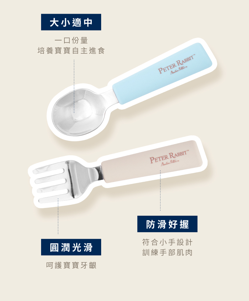 不鏽鋼匙叉面 平滑、無利角,呵護寶寶牙齦