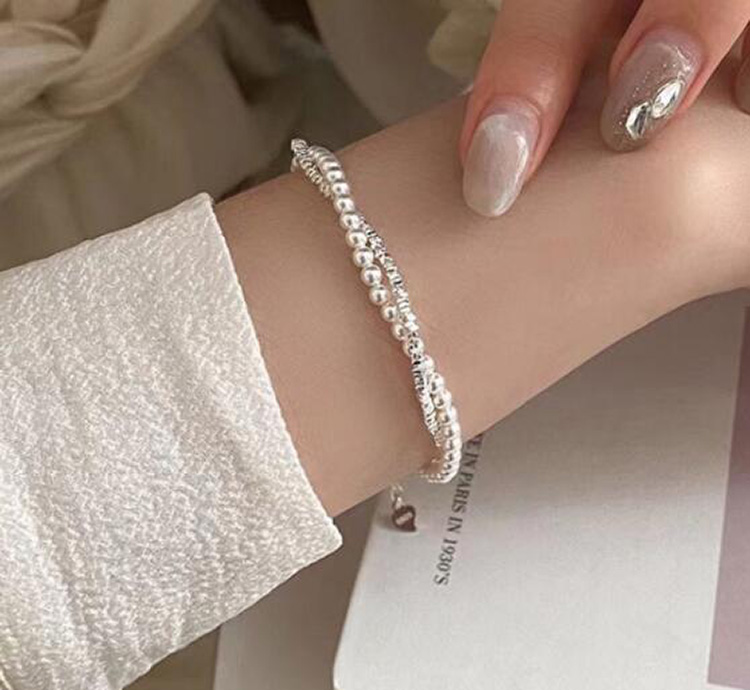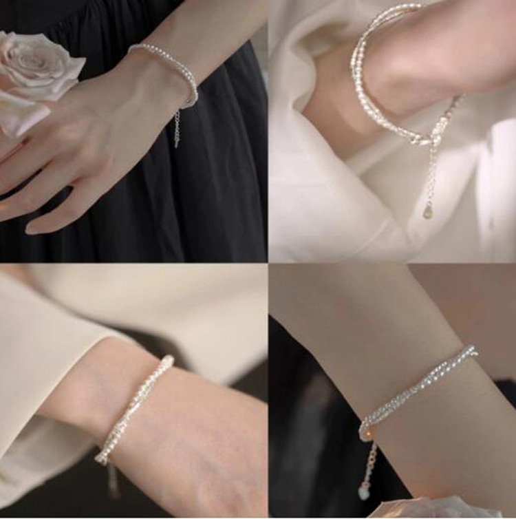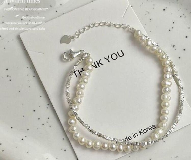 【ANGEL】優雅雙層纏繞淡水珍珠碎銀手鍊(白色)