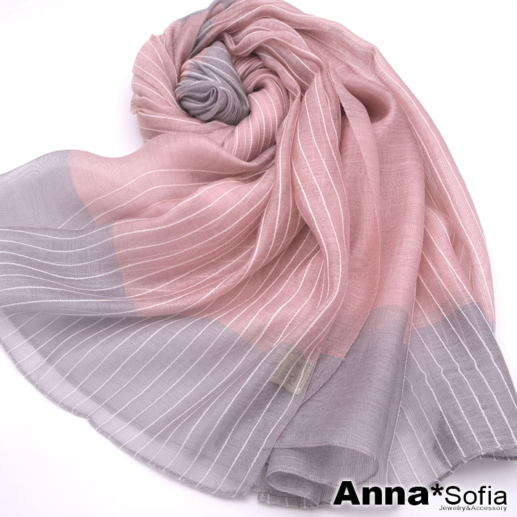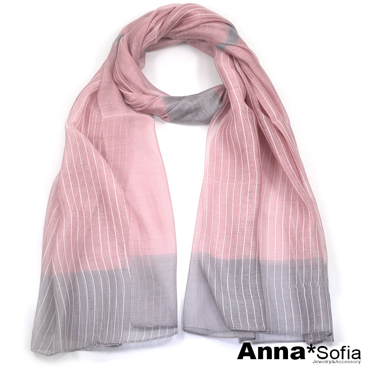 【AnnaSofia】真絲羊毛混紡大尺寸披肩絲巾圍巾-粉彩直條紋拼色 現貨(粉系)