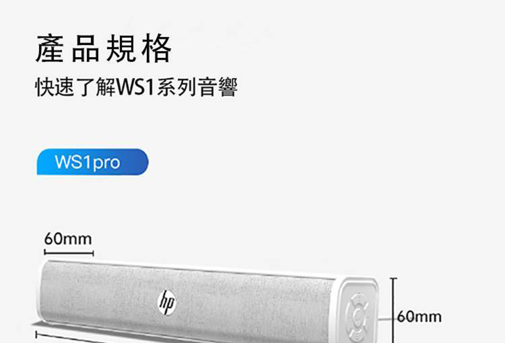 【HP 惠普】WS1 Pro 藍芽重低音雙喇叭音響(USB供電/藍芽/有線雙模式/多種設備兼容)