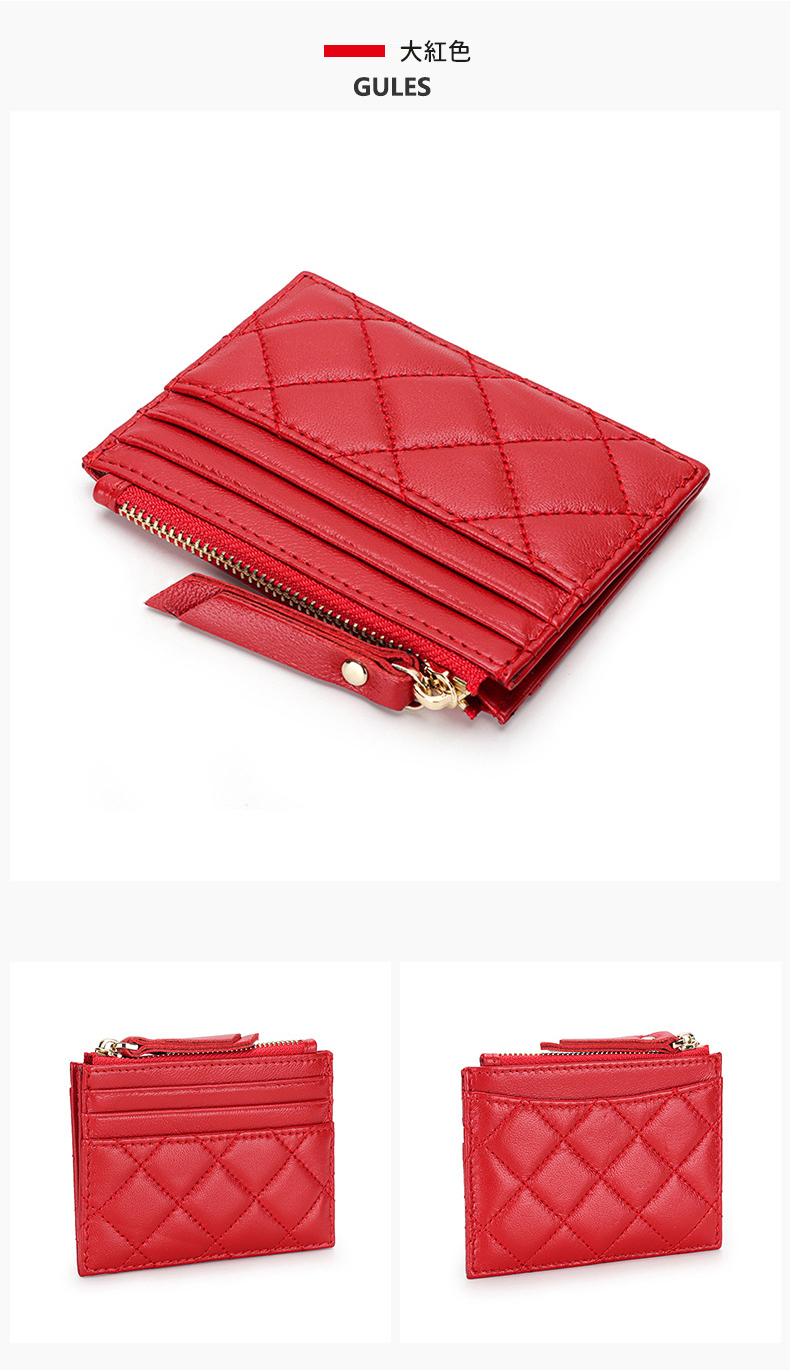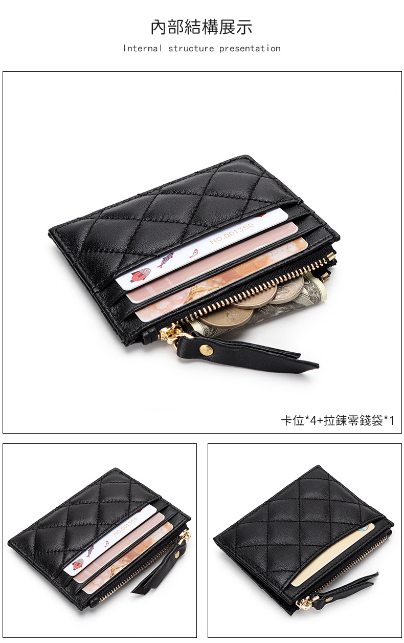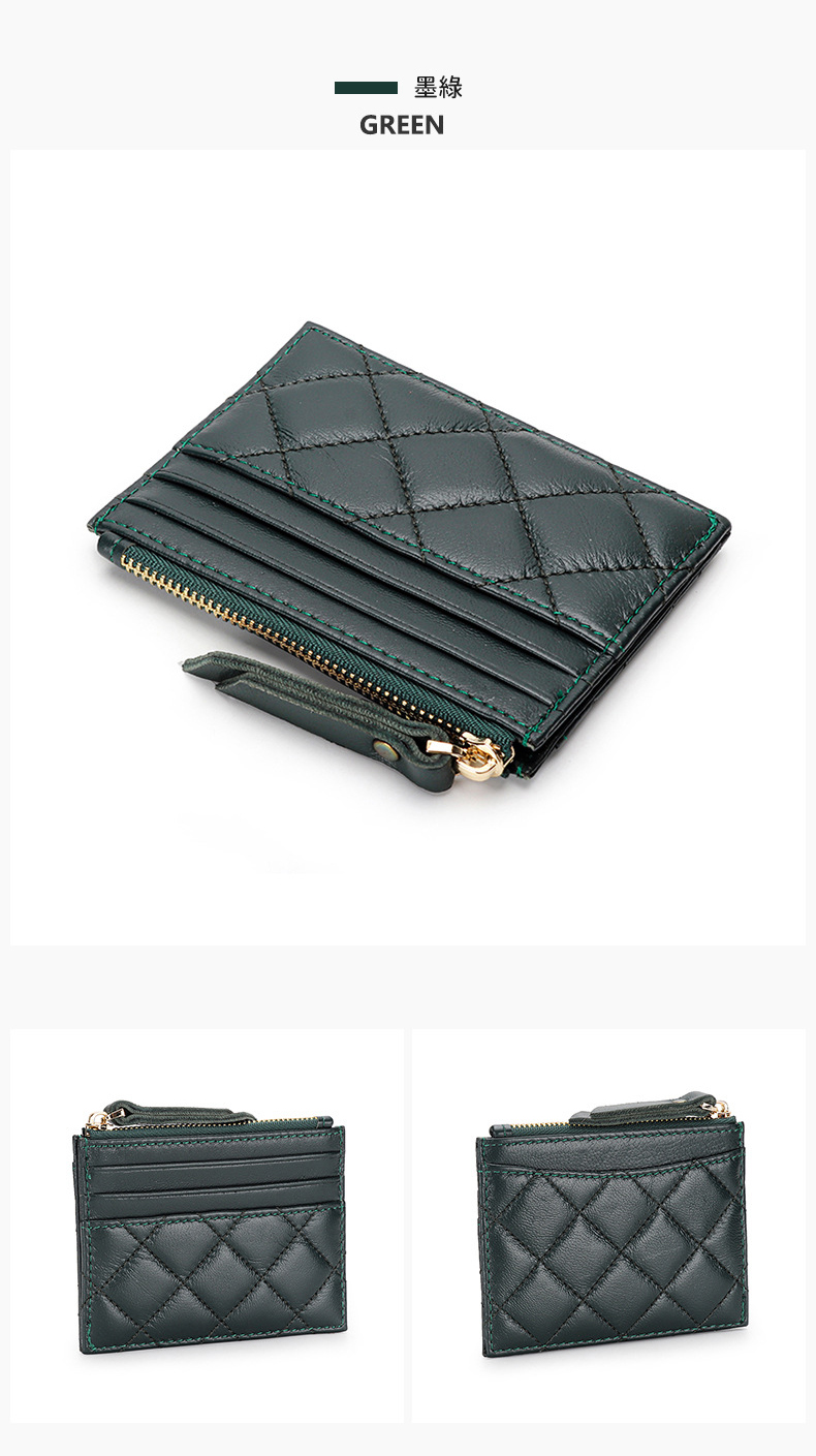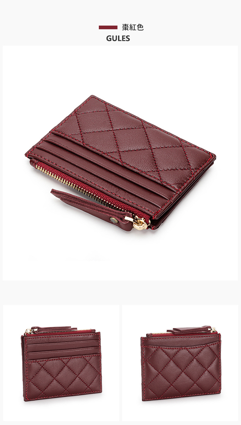 【EGO+】雙11 真皮 羊皮菱格紋 信用卡片夾 零錢包(真皮包包 硬幣袋 名片夾)
