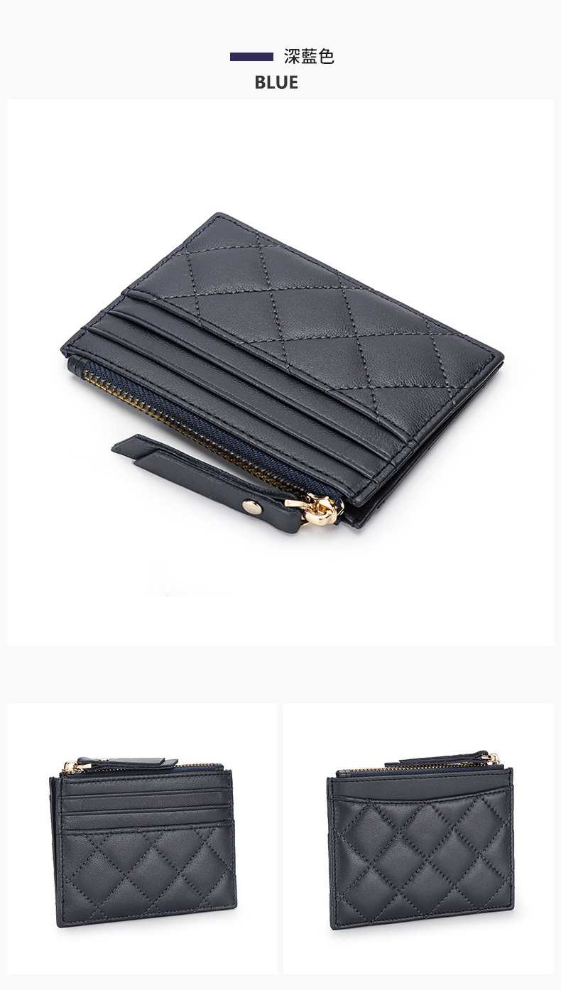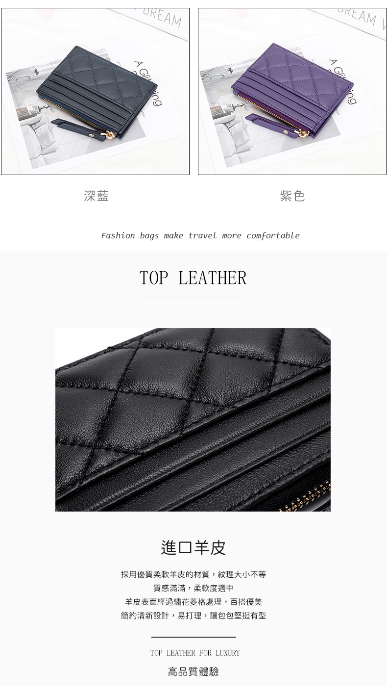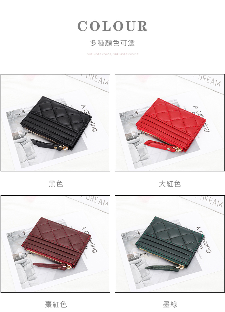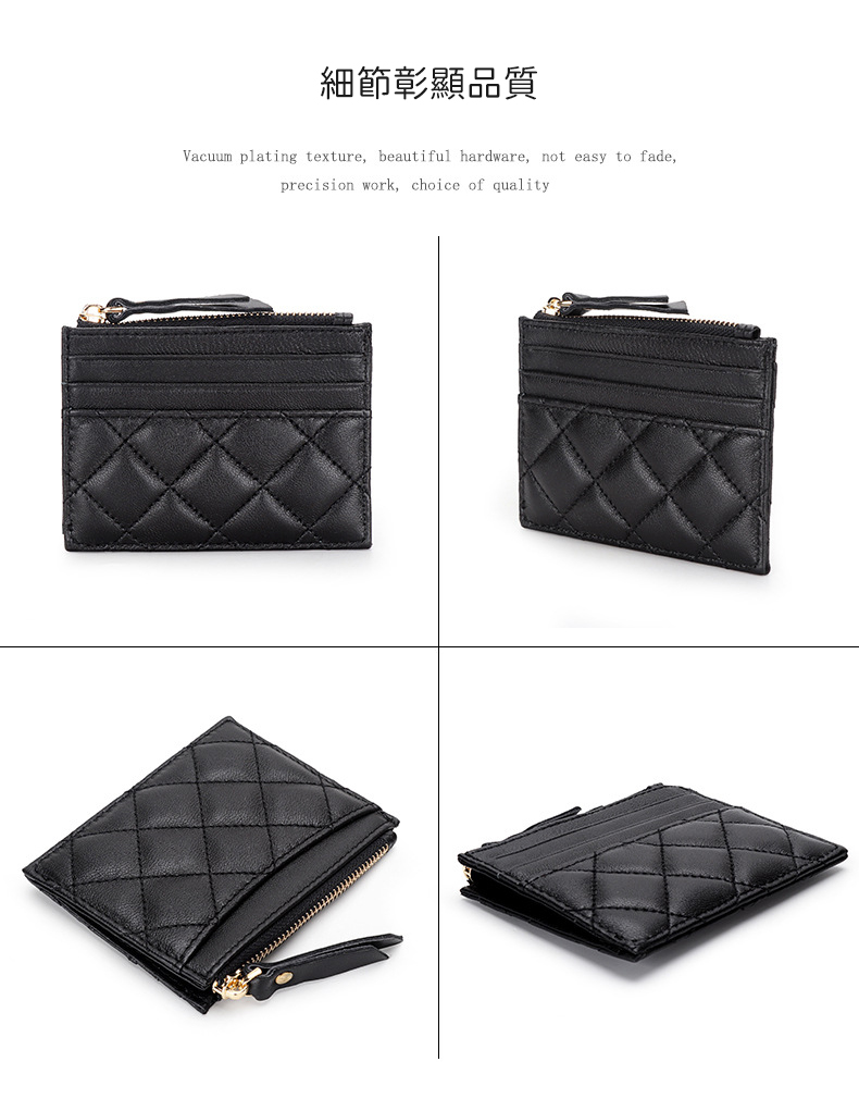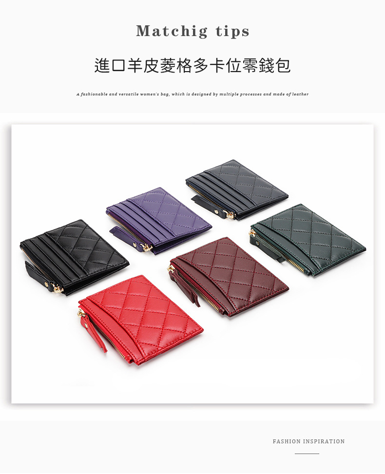 【EGO+】雙11 真皮 羊皮菱格紋 信用卡片夾 零錢包(真皮包包 硬幣袋 名片夾)