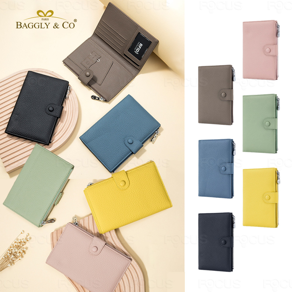 【BAGGLY&CO】雙11 諾曼第RFID荔枝紋頭層牛皮加大多夾層筆記本零錢包護照夾(粉/綠/黃