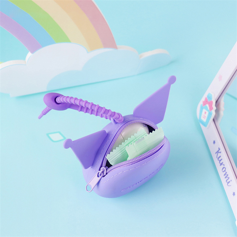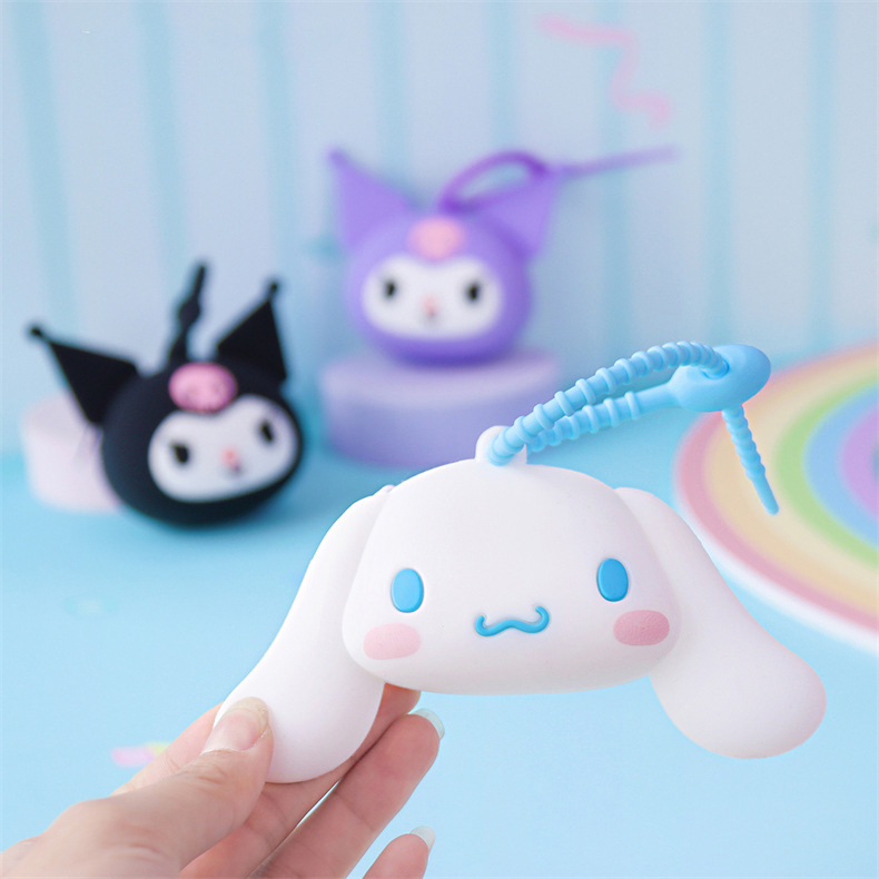 【SANRIO 三麗鷗】卡通系列大頭造型矽膠材質迷你耳機收納包零錢包掛件(庫洛米/大耳