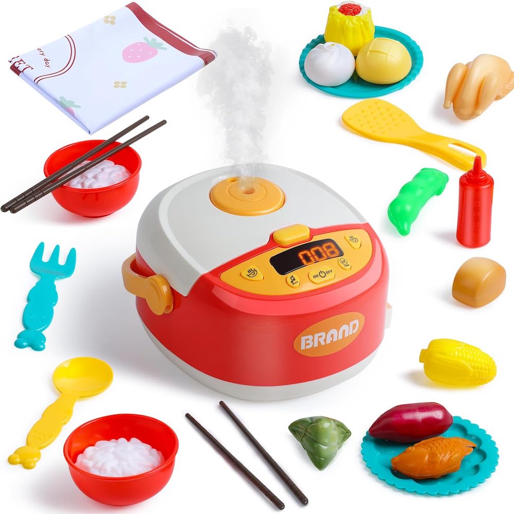 【CuteStone】兒童仿真噴霧煮飯鍋與切切樂26件套裝玩具組合(廚房玩具組 生日玩具 女孩玩具 兒童益智玩具)