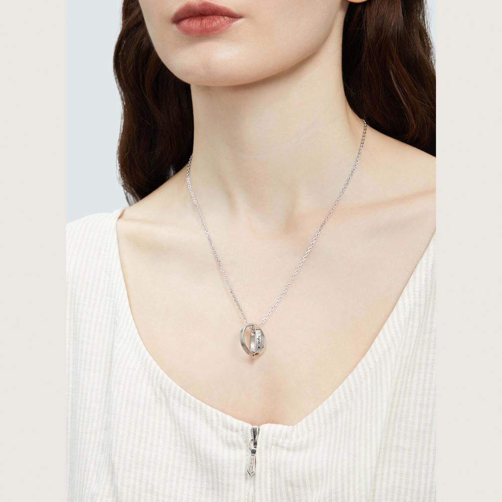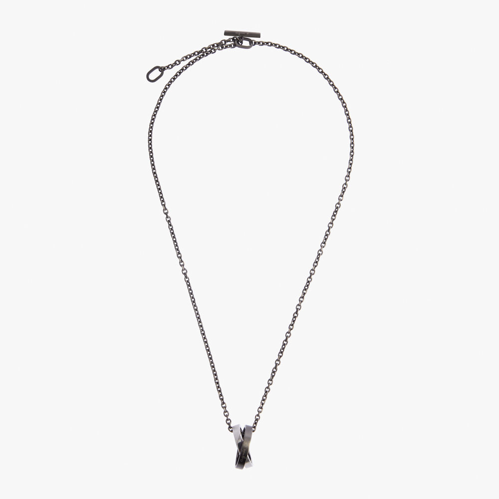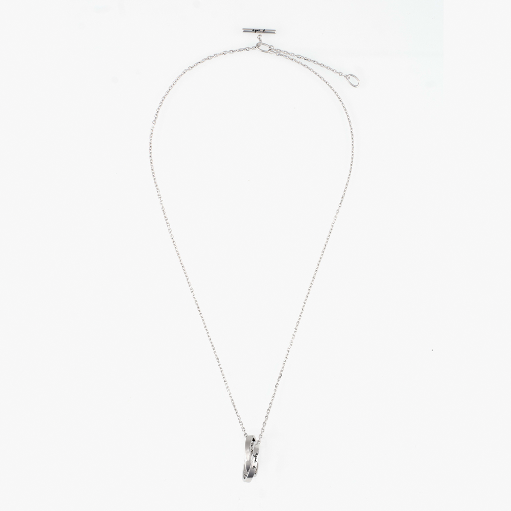 這款項鍊採用交疊設計 並刻有條紋圖案 綴飾經典 agnès b.標誌