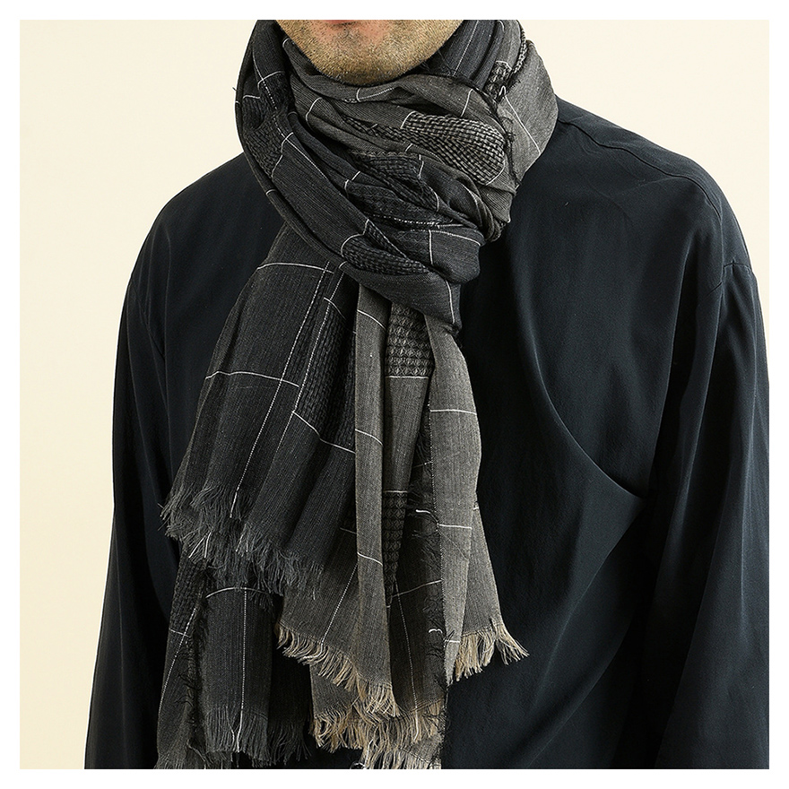 【Jun Jun】棉麻質感個性圍巾 色織雙色拼接圍巾(男士圍巾)