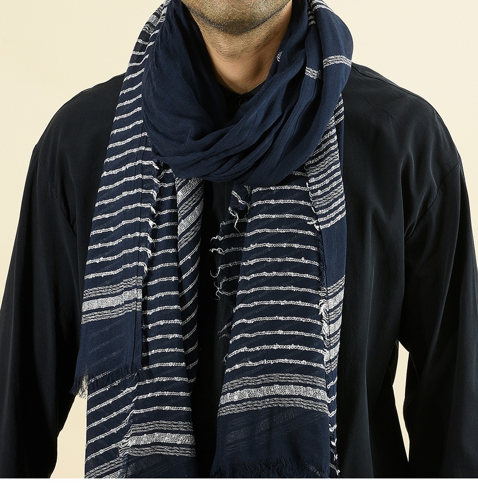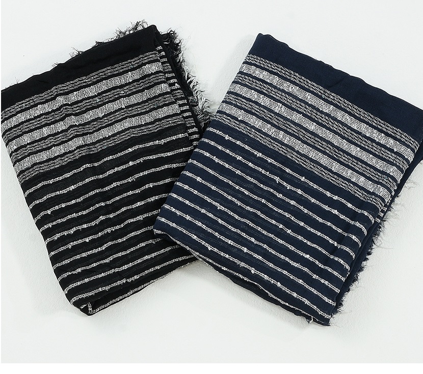 【Jun Jun】棉麻質感個性圍巾 色織雙色條紋圍巾(男士圍巾)