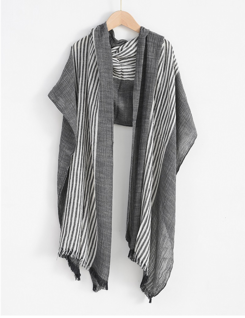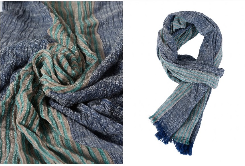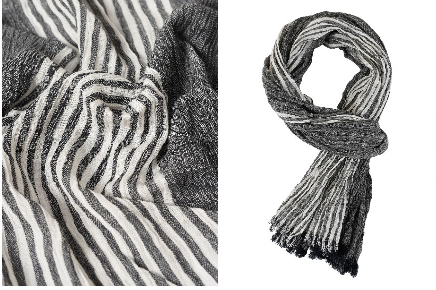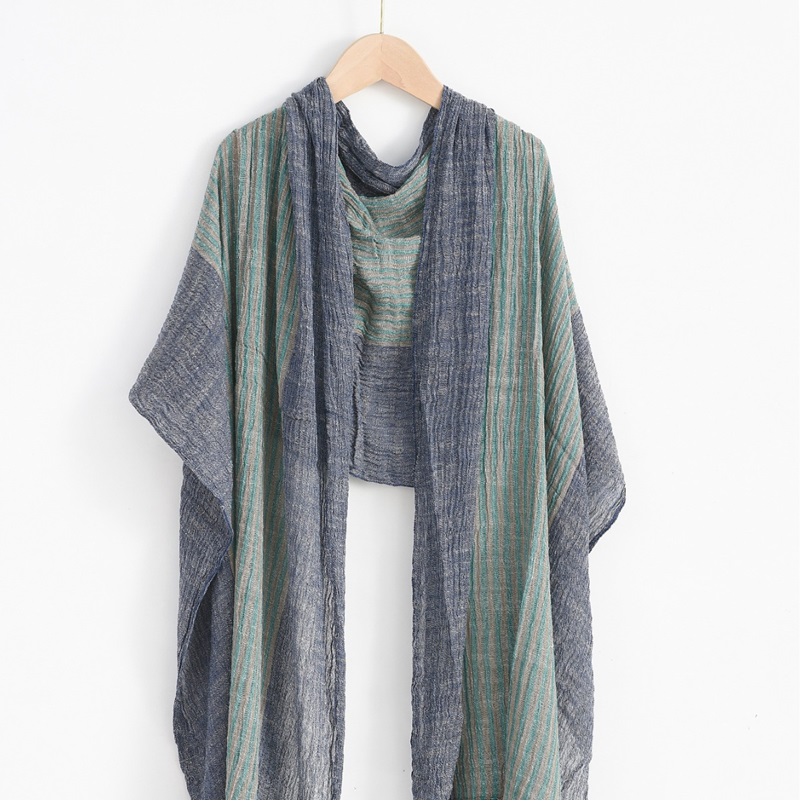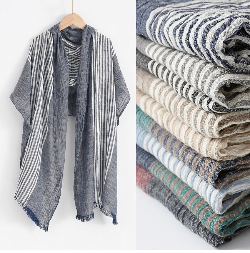 【Jun Jun】棉麻質感個性圍巾 色織褶皺條紋圍巾(選色)
