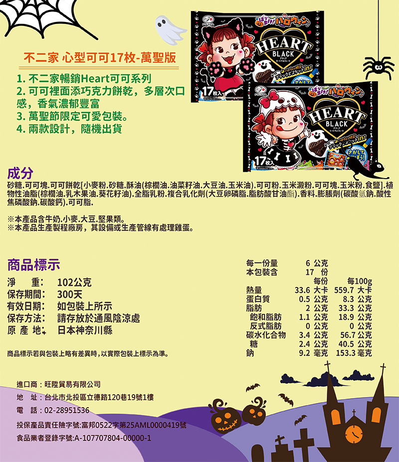 【不二家】心型可可17枚-萬聖版 102g