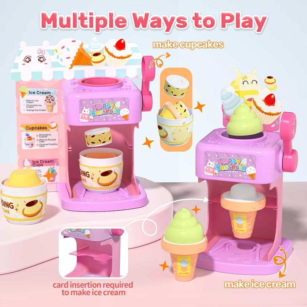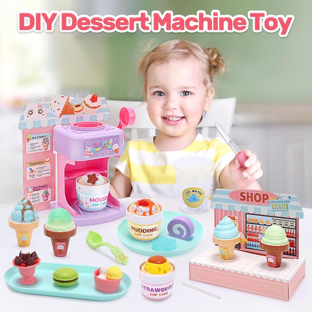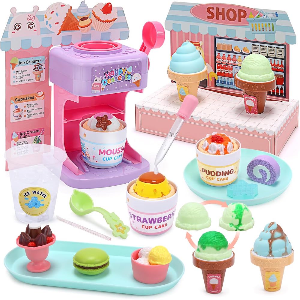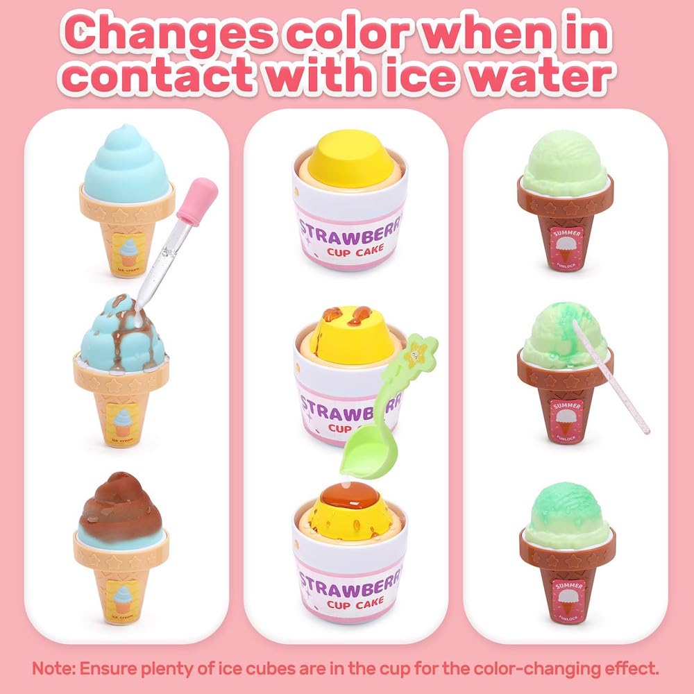 【CuteStone】兒童仿真變色冰淇淋與冰淇淋機套裝玩具33件遊戲組(生日禮物 冰淇淋玩具 女孩玩具)